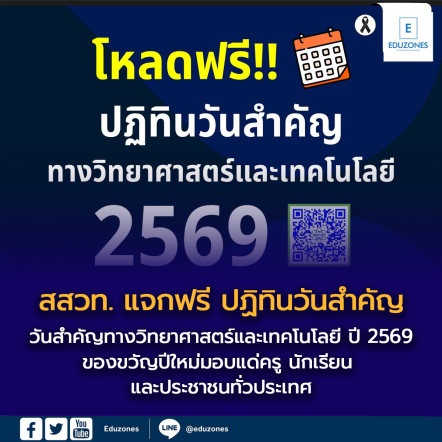 EZ Webmaster December 26, 2025 สสวท. แจกฟรี ปฏิทินวันสำคัญทางวิทยาศาสตร์และเทคโนโลยี ปี 2569 ของขวัญปีใหม่มอบแด่ครู นักเรียน และประชาชนทั่วประเทศ EZ Webmaster December 26, 2025 สสวท. แจกฟรี ปฏิทินวันสำคัญทางวิทยาศาสตร์และเทคโนโลยี ปี 2569 ของขวัญปีใหม่มอบแด่ครู นักเรียน และประชาชนทั่วประเทศ ต้อนรับปีใหม่ 2569 สถาบันส่งเสริมการสอนวิทยาศาสตร์และเทคโนโลยี (สสวท.) โดยเพจเฟซบุ๊ก IPST Thailand มอบของขวัญปีใหม่พิเศษแด่ครู นักเรียน และประชาชนทั่วไป ด้วยการเปิดให้ดาวน์โหลดฟรี “ปฏิทินวันสำคัญทางวิทยาศาสตร์และเทคโนโลยี ประจำปี 2569” ปฏิทินปีนี้มาในธีมภาพถ่ายจากกิจกรรม “เด็กถือกล้องส่องโลกจิ๋ว” ถ่ายทอดการเรียนรู้วิทยาศาสตร์ผ่านมุมมองของเด็ก ๆ พร้อมรวบรวมวันสำคัญและเรื่องราวน่ารู้ทางวิทยาศาสตร์และเทคโนโลยี ที่ช่วยส่งเสริมการเรียนรู้ สร้างแรงบันดาลใจ ต่อยอดการนำไปใช้ในห้องเรียนและชีวิตประจำวันตลอดทั้งปี รวมถึงใช้เป็นสื่อสนับสนุนการจัดการเรียนรู้และกิจกรรมทางการศึกษา ดาวน์โหลดและส่งต่อได้ฟรี จากเว็บไซต์ สสวท. คลิกที่ https://www.ipst.ac.th/ipst-calendar-2026 Continue Reading