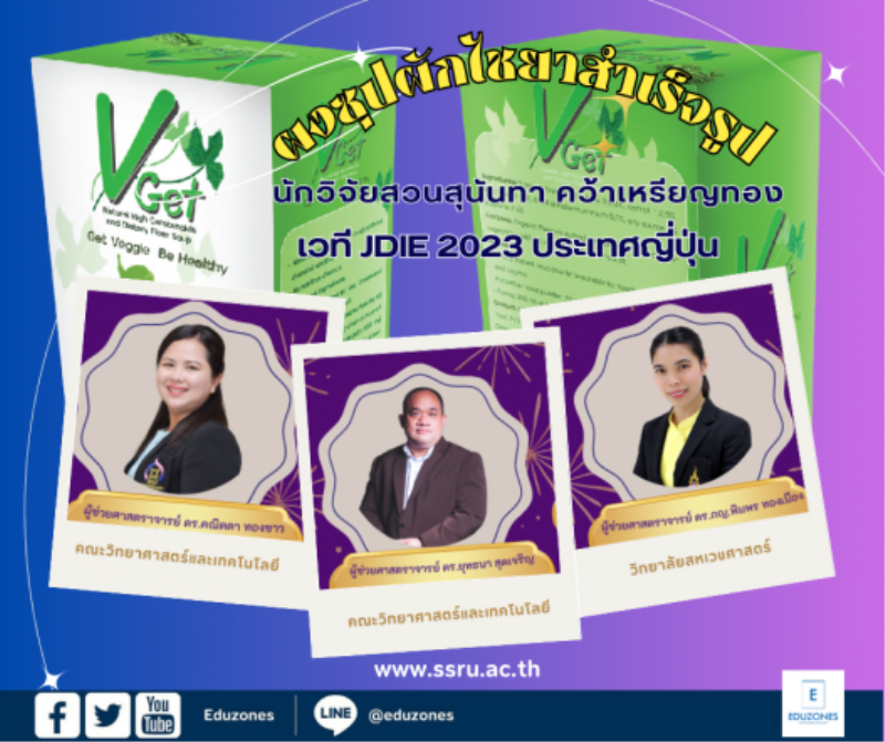 tui sakrapee August 7, 2023 ผลงาน “ผงซุปผักไชยาสำเร็จรูป” นักวิจัยไทยดังไกล คว้าเหรียญทอง เวที JDIE 2023 ประเทศญี่ปุ่น tui sakrapee August 7, 2023 ผลงาน “ผงซุปผักไชยาสำเร็จรูป” คว้ารางวัลเหรียญทอง จากเวที Japan Design, Idea and Invention Expo ณ กรุงโตเกียว ประเทศญี่ปุ่น ทีมนักวิจัยมหาวิทยาลัยราชภัฏสวนสุนันทา โดย ผู้ช่วยศาสตราจารย์ ดร.คณิตดา ทองขาว ผู้ช่วยศาสตราจารย์ ดร.ยุทธนา สุดเจริญ คณะวิทยาศาสตร์และเทคโนโลยี และ ผู้ช่วยศาสตราจารย์ ดร.ภญ.พิมพร ทองเมือง วิทยาลัยสหเวชศาสตร์ นำผลงานวิจัย “ผงซุปผักไชยาสำเร็จรูป” ซึ่งได้รับการคัดเลือกจากสำนักงานการวิจัยแห่งชาติ (วช.) เข้าร่วมประกวดและจัดแสดงผลงาน… Continue Reading