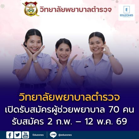 EZ Webmaster February 3, 2026 วิทยาลัยพยาบาลตำรวจ เปิดรับสมัครบุคคลภายนอก ศึกษาหลักสูตรประกาศนียบัตรผู้ช่วยพยาบาล ปีการศึกษา 2569 EZ Webmaster February 3, 2026 วิทยาลัยพยาบาลตำรวจ เปิดรับสมัครบุคคลภายนอก ศึกษาหลักสูตรประกาศนียบัตรผู้ช่วยพยาบาล ปีการศึกษา 2569 รับ 70 คน วิทยาลัยพยาบาลตำรวจโรงพยาบาลตำรวจ สำนักงานตำรวจแห่งชาติประกาศรับสมัครและสอบคัดเลือก บุคคลภายนอกทั้งเพศชายและเพศหญิงเข้าศึกษาใน หลักสูตรประกาศนียบัตรผู้ช่วยพยาบาลประจำปีการศึกษา 2569 ตามประกาศอย่างเป็นทางการของวิทยาลัย การเปิดรับสมัครในครั้งนี้นับเป็นโอกาสสำคัญสำหรับผู้ที่สนใจสายงานด้านการพยาบาล และต้องการประกอบวิชาชีพด้านการดูแลสุขภาพในหน่วยงานภาครัฐ 📌 จำนวนที่รับสมัคร รับสมัครและสอบคัดเลือก บุคคลภายนอก รวมจำนวนทั้งสิ้น 70 คน เปิดรับ ทั้งเพศชายและเพศหญิง 🧾 คุณสมบัติทั่วไปของผู้สมัคร ผู้สมัครต้องมีคุณสมบัติครบถ้วน ดังนี้ สำเร็จการศึกษา ไม่ต่ำกว่ามัธยมศึกษาตอนปลาย หรือเทียบเท่าตามหลักสูตรที่กระทรวงศึกษาธิการรับรอง… Continue Reading