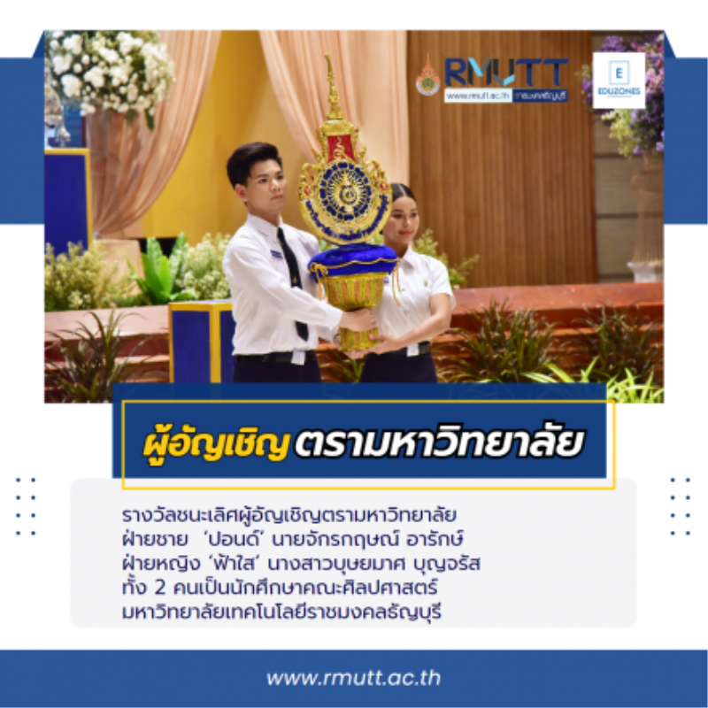 tui sakrapee June 15, 2023 2 นักศึกษาศิลปศาสตร์ มทร.ธัญบุรี คว้ารางวัลผู้อัญเชิญตรามหาวิทยาลัย tui sakrapee June 15, 2023 ผ่านพ้นไปกับการประกวดผู้อัญเชิญตรามหาวิทยาลัยประจำปี 2566 โดยนักศึกษาที่ได้รับรางวัลชนะเลิศผู้อัญเชิญตรามหาวิทยาลัย ฝ่ายชาย ได้แก่ ‘ปอนด์’ นายจักรกฤษณ์ อารักษ์ นักศึกษาชั้นปี 4 สาขาการท่องเที่ยว นักศึกษาจากคณะศิลปศาสตร์ ผู้อัญเชิญตรามหาวิทยาลัย ฝ่ายหญิง ได้แก่ ‘ฟ้าใส’ นางสาวบุษยมาศ บุญจรัส นักศึกษาชั้นปี 2 สาขาการจัดการการโรงแรม คณะศิลปศาสตร์ มหาวิทยาลัยเทคโนโลยีราชมงคลธัญบุรี (มทร.ธัญบุรี) ‘ปอนด์’ เล่าว่า ตั้งใจและมุ่งมั่นที่ประกวดผู้อัญเชิญตรา แต่เมื่อปีที่แล้วติดโควิด เป็นเกียรติที่สูงสุดในการอัญเชิญตรามหาวิทยาลัย เป็นตัวอย่างที่ดีให้กับคนรุ่นน้อง และถือว่าเป็นการสืบทอดประเพณีที่มีมารุ่นต่อรุ่นได้เป็นอย่างดีความตั้งใจและบุคลิกภาพทำให้ชนะใจกรรมการ เคยเข้าร่วมประกวดดาวเดือนคณะศิลปศาสตร์ได้ตำแหน่งรองอันดับ2 พิธีกรในวันไหว้ครูคณะศิลปศาสตร์ ถือธงคณะศิลปศาสตร์ในงานพิธีต่างๆของมหาวิทยาลัย ตอนแรกประกาศผลรู้สึกตกใจ เพื่อน ๆ ที่ร่วมกิจกรรมทำได้ดีเหมือนกัน ‘ฟ้าใส’ เล่าว่า เป็นครั้งแรกที่เข้าร่วมกิจกรรมของมหาลัยอย่างเต็มตัว ถือว่าเป็นโอกาสดีๆ เป็นความภาคภูมิใจให้กับตนเองและครอบครัว… Continue Reading