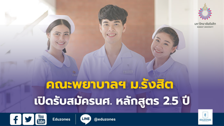 EZ Webmaster October 10, 2025 คณะพยาบาลฯ ม.รังสิต เปิดรับสมัครนศ. หลักสูตร 2.5 ปี EZ Webmaster October 10, 2025 คณะพยาบาลฯ ม.รังสิต เปิดรับสมัครนศ. หลักสูตร 2.5 ปี คณะพยาบาลศาสตร์ มหาวิทยาลัยรังสิต เปิดรับสมัครนักศึกษาใหม่ ปีการศึกษา 2569 สำหรับผู้สำเร็จการศึกษาปริญญาตรีทุกสาขา เข้าเรียนหลักสูตรพยาบาลศาสตรบัณฑิต (หลักสูตรใหม่ พ.ศ. 2565) (หลักสูตร 2.5 ปี) โดยมีคุณสมบัติดังนี้ 1. สำเร็จการศึกษาระดับปริญญาตรีในสาขาอื่น ๆ ที่ไม่ใช่สาขาพยาบาลศาสตร์ 2. มีคะแนนเฉลี่ยสะสมระดับปริญญาตรีไม่ต่ำกว่า 2.50 3. กรณีเป็นนักศึกษาต่างชาติ ต้องสามารถสื่อสารและใช้ภาษาไทยได้ 4.… Continue Reading