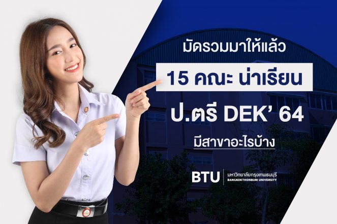 มทร.ธัญบุรี พร้อมปั้นบัณฑิตสู่ยุค NEXT GEN การันตีความสำเร็จด้วยคลื่นมหาชน tui sakrapeeDecember 4, 2025 มหาวิทยาลัยเทคโนโลยีราชมงคลธัญบุรี (มทร.ธัญบุรี) สร้างปรากฏการณ์ครั้งสำคัญในแวดวงการศึกษาไทยผ่านงาน ‘RMUTT NEXT GEN: Open House 2026 : เปิดประตูสู่ราชมงคลธัญบุรี 69’ เมื่อวันที่ 27 และ 28 พฤศจิกายน 2568… ม.กรุงเทพ จัดงาน The Shape of Tomorrow: Bangkok Art & Architecture @Dib Bangkok tui sakrapeeDecember 4, 2025 คณะสถาปัตยกรรมศาสตร์ มหาวิทยาลัยกรุงเทพ จัดงาน “The Shape of Tomorrow: Bangkok Art & Architecture” เปิดพื้นที่แลกเปลี่ยนองค์ความรู้และประสบการณ์ระหว่างนักวิชาการ ผู้เชี่ยวชาญในวงการสถาปัตยกรรมที่มุ่งเน้นแนวคิดการออกแบบที่ตอบโจทย์ความยั่งยืน (Sustainability) และการปรับใช้พื้นที่อาคารให้เกิดคุณค่าใหม่ (Adaptive Reuse) โดยปรับเปลี่ยนพื้นที่เดิมให้กลายเป็นพื้นที่สร้างสรรค์อย่าง… มหาวิทยาลัยราชภัฏสวนสุนันทา จับมือ “เอ็ม พาวเวอร์ คอร์ปอเรชั่น” ลงนาม MOU ขับเคลื่อนระบบจัดการวัสดุรีไซเคิล สู่มหาวิทยาลัยสีเขียวอย่างยั่งยืน tui sakrapeeDecember 4, 2025 เมื่อวันพฤหัสบดีที่ 4 ธันวาคม 2568 มหาวิทยาลัยราชภัฏสวนสุนันทา จัดพิธีลงนามบันทึกความเข้าใจ (MOU) ร่วมกับบริษัท เอ็ม พาวเวอร์ คอร์ปอเรชั่น จำกัด ณ ห้องประชุมสภามหาวิทยาลัย เพื่อขับเคลื่อนการพัฒนาระบบการจัดการวัสดุรีไซเคิลภายในมหาวิทยาลัยอย่างเป็นรูปธรรมและยั่งยืน พิธีลงนามในครั้งนี้มีวัตถุประสงค์เพื่อพัฒนากลไกการจัดการวัสดุรีไซเคิลให้มีประสิทธิภาพยิ่งขึ้น ส่งเสริมการคัดแยกขยะอย่างถูกต้อง เพิ่มคุณค่าและสร้างรายได้จากวัสดุที่สามารถนำกลับมาใช้ใหม่… สุดเจ๋ง! สถานศึกษาอาชีวะ รับรางวัลโครงการชีววิถีฯ ระดับประเทศ ประจำปี 2568 สานต่อปณิธานหลักปรัชญาเศรษฐกิจพอเพียงของพ่อหลวงรัชกาลที่ 9 EZ WebmasterDecember 3, 2025 สุดเจ๋ง! สถานศึกษาอาชีวะ รับรางวัลโครงการชีววิถีฯ ระดับประเทศ ประจำปี 2568 สานต่อปณิธานหลักปรัชญาเศรษฐกิจพอเพียงของพ่อหลวงรัชกาลที่ 9 วันนี้ (1 ธ.ค. 68) นายยศพล เวณุโกเศศ เลขาธิการคณะกรรมการการอาชีวศึกษา มอบหมายให้ นายสง่า แต่เชื้อสาย… Search for: Search Tag: มหาวิทยาลัยกรุงเทพธนบุรี tui sakrapee June 7, 2021 15 คณะน่าเรียน ที่ #ม.กรุงเทพธนบุรี มีทุน หอพักฟรี ค่าน้ำ-ค่าไฟ แจกสมุด หนังสือเรียน ฟรี tui sakrapee June 7, 2021 15 คณะ น่าเรียนที่มหาวิทยาลัยกรุงเทพธนบุรี มีครบตามความถนัดของแต่ละคน พร้อมสวัสดิการที่มากกว่าใคร ยื่นเกรดเฉลี่ยสะสมสมัครได้เลย เลือกคณะที่ใช่ สาขาที่ชอบ ได้เลย รับวุฒิ ม.6,ปวช.,ปวส. หรือเทียบเท่า ยื่นเกรดเฉลี่ยสะสมสมัครได้เลย ยื่นกู้กองทุน กยศ. กรอ. ได้ หอพักฟรี ค่าน้ำ-ค่าไฟ ฟรี แจกสมุด หนังสือเรียน ฟรี มีระบบ E-Book ภาคปกติ ภาคพิเศษ (เสาร์-อาทิตย์) รายละเอียดหลักสูตร https://b