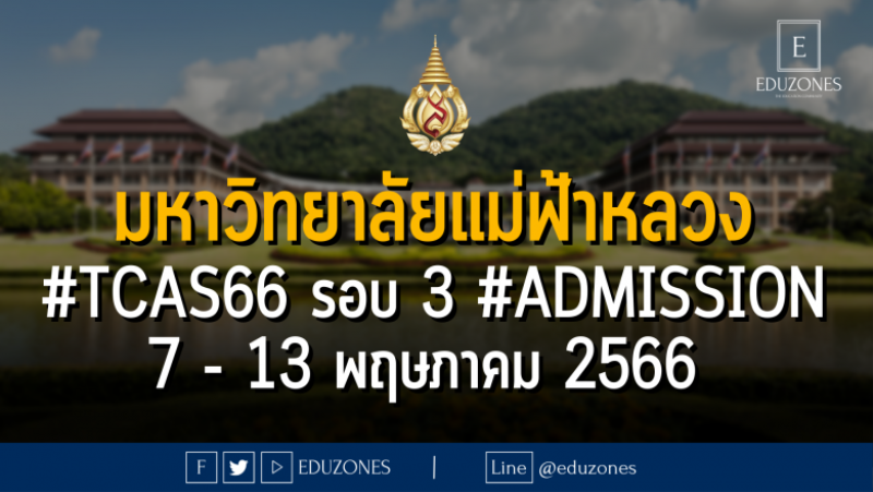 EZ Webmaster April 12, 2023 มหาวิทยาลัยแม่ฟ้าหลวง #TCAS66 รอบ 3 #Admission – 7 – 13 พฤษภาคม 2566 EZ Webmaster April 12, 2023 มหาวิทยาลัยแม่ฟ้าหลวง #TCAS66 รอบ 3 #Admission – 7 – 13 พฤษภาคม 2566 . การรับสมัครและคัดเลือกบุคคลเข้าศึกษาระดับปริญญาตรี ปีการศึกษา 2566 รอบที่ 3 Admission (รูปแบบใช้ผลคะแนน A-Level) . สาขาวิชาที่เปิดรับสมัคร : 34 สาขาวิชา กำหนดการรับสมัคร : วันที่ 7 – 13 พฤษภาคม 2566 รายละเอียดประกาศรับสมัคร คลิกที่นี่ ประกาศเปลี่ยนแปลงเกณฑ์คะแนนขั้นต่ำ หลักสูตรบริหารธุรกิจบัณฑิต วิชาเอกบริหารธุรกิจ คลิกที่นี่ ข้อมูล ณ วันที่ 27… Continue Reading
