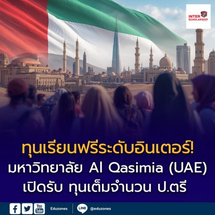 EZ Webmaster January 19, 2026 มหาวิทยาลัย Al Qasimia เปิดรับทุนเต็มจำนวน ปีการศึกษา 2026/2027 เรียนฟรี มีเงินเดือน มีที่พัก สำหรับนักศึกษานานาชาติ รวมไทย EZ Webmaster January 19, 2026 มหาวิทยาลัย Al Qasimia เปิดรับทุนเต็มจำนวน ปีการศึกษา 2026/2027 เรียนฟรี มีเงินเดือน มีที่พัก สำหรับนักศึกษานานาชาติ รวมไทย มหาวิทยาลัย Al Qasimia(Al Qasimia University – AQU)สถาบันการศึกษานานาชาติชั้นนำ ณ รัฐชาร์จาห์สหรัฐอาหรับเอมิเรตส์ประกาศเปิดรับสมัครนักศึกษาต่างชาติเพื่อ ชิงทุนการศึกษาเต็มจำนวนประจำปีการศึกษา 2026/2027 ทุนดังกล่าวเปิดโอกาสให้นักศึกษาจากทั่วโลก รวมถึง นักศึกษาชาวไทยเข้าศึกษาต่อในระดับ ปริญญาตรีภายใต้หลักสูตรที่ผสมผสานองค์ความรู้สมัยใหม่ควบคู่กับคุณธรรม จริยธรรม และอัตลักษณ์ทางวัฒนธรรม สวัสดิการระดับพรีเมียม: เรียนฟรี มีเงินเดือน มีที่พัก… Continue Reading