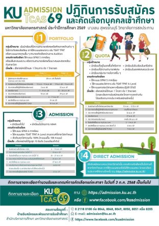 EZ Webmaster August 21, 2025 ม.เกษตรศาสตร์ ประกาศ ปฏิทินคัดเลือก TCAS69 EZ Webmaster August 21, 2025 ม.เกษตรศาสตร์ ประกาศ ปฏิทินคัดเลือก TCAS69 รอบที่ 1 Portfolio – ครั้งที่ 1 รับสมัคร วันที่ 15 ต.ค.68 – 13 พ.ย.68 – ครั้งที่ 2 รับสมัคร วันที่ 19 ธ.ค.68 – 15 ม.ค.69 สมัครกับ ม.เกษตรศาสตร์ ที่ https://admission.ku.ac.th… Continue Reading