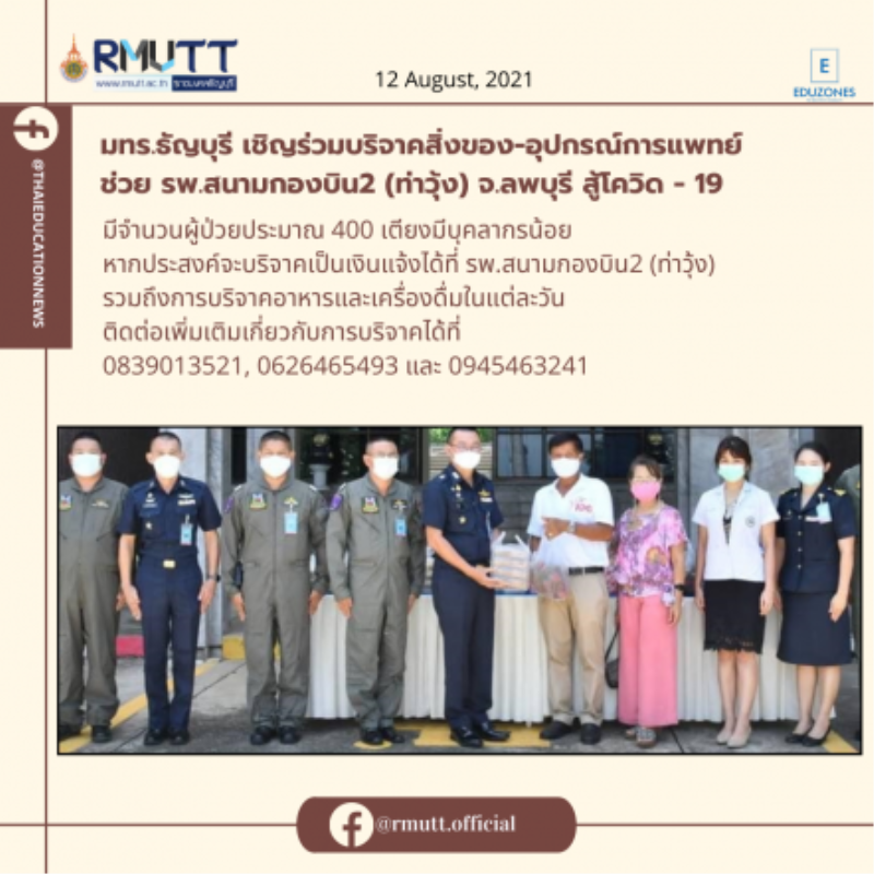 tui sakrapee August 12, 2021 สู้โควิด! มทร.ธัญบุรี เชิญร่วมช่วยเหลือและบริจาคสิ่งของ-อุปกรณ์การแพทย์ให้กับ รพ.สนามกองบิน2 (ท่าวุ้ง) จ.ลพบุรี tui sakrapee August 12, 2021 มทร.ธัญบุรี เชิญชวนบุคลากร นักศึกษา ผู้ปกครองและประชาชน ร่วมช่วยเหลือและบริจาคสิ่งของ-อุปกรณ์การแพทย์ให้กับ รพ.สนามกองบิน2 (ท่าวุ้ง) จ.ลพบุรี ซึ่งสิ่งของที่ขาดและทาง รพ. แจ้งมานั้น เช่น ผ้าอนามัย แปรงสีฟัน ยาสีฟัน ยากันยุง น้ำยาล้างห้องน้ำ ผงซักฟอก น้ำยาล้างถ้วยจาน ขนมสำหรับเด็กๆ บะหมี่สำเร็จรูป ถ้วยจาน ช้อน และน้ำดื่ม ส่วนอุปกรณ์ทางการแพทย์ที่เจ้าหน้าที่ต้องการ คือ หน้ากากอนามัยทางการแพทย์ N95 ชุดกาวน์กันน้ำแขนยาว ชุดป้องกันแบบใช้แล้วทิ้ง (PPE) รวมถึง… Continue Reading