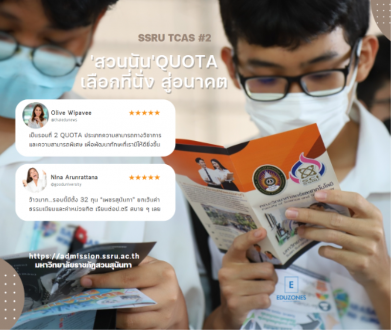 สวนสุนันทาเปิดเวที HIDA รุ่นที่ 5 รวมแพทย์ผู้เชี่ยวชาญถ่ายทอดความรู้ “โรคใกล้ตัว” ชี้แนวทางดูแลตนเอง ลดเสี่ยงโรคเรื้อรังคนไทย tui sakrapeeDecember 19, 2025 📰 ราชภัฏสวนสุนันทาเปิดเวที HIDA รุ่นที่ 5 รวมแพทย์ผู้เชี่ยวชาญถ่ายทอดความรู้ “โรคใกล้ตัว” ชี้แนวทางดูแลตนเอง ลดเสี่ยงโรคเรื้อรังคนไทย เมื่อวันพฤหัสบดีที่ 18 ธันวาคม 2568 ณ โรงแรมชาเทรียม ริเวอร์ไซด์ กรุงเทพฯหลักสูตรผู้บริหารระดับสูงด้านการพัฒนาคุณภาพบริการสุขภาพและความงาม (HIDA)… มหาวิทยาลัยกรุงเทพ จัดงาน “BU Game On! Expo x Job Fair for Game Industry 2025” เวทีพิสูจน์ฝีมือนักพัฒนาเกมรุ่นใหม่ tui sakrapeeDecember 18, 2025 มหาวิทยาลัยกรุงเทพ จัดงาน “BU Game On! Expo x Job Fair for Game Industry 2025″ เวทีพิสูจน์ฝีมือนักพัฒนาเกมรุ่นใหม่ เชื่อมโลกการศึกษาสู่อุตสาหกรรมจริง มหาวิทยาลัยกรุงเทพ จัดงาน… มนุษยศาสตร์ฯ สวนสุนันทา ชวนร่วมงานประชุมวิชาการระดับนานาชาติ ICAC 2026 ด้านชุมชนอาเชียน tui sakrapeeDecember 18, 2025 ขอเชิญร่วมงานประชุมวิชาการระดับนานาชาติ ICAC 2026 ด้านชุมชนอาเชียน ณ มหาวิทยาลัยราชภัฏสวนสุนันทา คณะมนุษยศาสตร์และสังคมศาสตร์ มหาวิทยาลัยราชภัฏสวนสุนันทา ร่วมกับเครือข่ายพันธมิตรทางวิชาการระดับนานาชาติ เตรียมจัดงานประชุมวิชาการระดับนานาชาติ ICAC 2026 (International Conference on Asian Communities) ในวันจันทร์ที่… ถ้าคุณชอบแชร์นี่คือโอกาส! “บริติช เคานซิล” ขยายเวลารับสมัครโครงการ “IELTS Prize 2025” ถึง 31 ธ.ค. นี้ ลุ้นชิงรางวัลรวม 100,000 บาท EZ WebmasterDecember 18, 2025 ถ้าคุณชอบแชร์นี่คือโอกาส! “บริติช เคานซิล” ขยายเวลารับสมัครโครงการ “IELTS Prize 2025” ถึง 31 ธ.ค. นี้ ลุ้นชิงรางวัลรวม 100,000 บาท พร้อมโอกาสร่วมงานกับสถาบันการสอบภาษาอังกฤษระดับโลก กรุงเทพฯ 17 ธันวาคม… Search for: Search Tag: รอบที่ 2 Quota EZ Webmaster June 21, 2024 คณะนิติศาสตร์ ม.ธรรมศาสตร์ รับผ่าน #TCAS68 รอบ #QUOTA #ADMISSION EZ Webmaster June 21, 2024 คณะนิติศาสตร์ ม.ธรรมศาสตร์ รับผ่าน #TCAS68 รอบ #QUOTA #ADMISSION คณะนิติศาสตร์ มหาวิทยาลัยธรรมศาสตร์ ประกาศเกณฑ์การรับสมัครบุคคลเข้าศึกษาในคณะนิติศาสตร์ มหาวิทยาลัยธรรมศาสตร์ ประจำปีการศึกษา 2568 . รอบที่ 2 #QUOTA รับจำนวน 50 คน หลักสูตรนิติศาสตรบัณฑิต (ศูนย์ลำปาง) เกณฑ์การคัดเลือก คะแนน TGAT รหัสวิชา 90 วิชาความถนัดทั่วไป ค่าน้ำหนัก 80% GPAX ค่าน้ำหนัก… Continue Reading tui sakrapee March 9, 2023 ก้าวสู่อนาคตที่ “สวนสุนันทา” รอบที่ 2 Quota พร้อมรับสมัครทุนเพชรสุนันทา วันนี้ถึง 30 มี.ค.นี้ tui sakrapee March 9, 2023 มหาวิทยาลัยราชภัฏสวนสุนันทา เปิดรับสมัครนักศึกษาใหม่ ภาคปกติ ระดับปริญญาตรี ประจำปีการศึกษา 2566 (รอบที่ 2 Quota) ตั้งแต่วันนี้ถึงวันที่ 30 มีนาคม 2566 สมัครได้ที่ https://admission.ssru.ac.th/login รับสมัครรอบที่ 2 Quota **ประกาศรับสมัครนักศึกษาใหม่ ภาคปกติ ระดับปริญญาตรี ประจำปีการศึกษา 2566 (รอบที่ 2 Quota) ประเภทความสามารถ