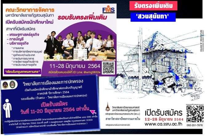 tui sakrapee June 12, 2021 โอกาสพิเศษ! สวนสุนันทา เปิดรับสมัครนักศึกษาใหม่รอบ “รับตรงเพิ่มเติม” tui sakrapee June 12, 2021 คณะวิทยาการจัดการ มหาวิทยาลัยราชภัฏสวนสุนันทา เปิดรับสมัครนักศึกษาใหม่ ระดับปริญญาตรี ภาคปกติ รอบรับตรงเพิ่มเติม เริ่ม 11-28 มิถุนายน 2564 สมัครด้วยตนเองทาง ID Line: @wmg5832e สมัครเรียนคณะวิทยาการจัดการ มหาวิทยาลัยราชภัฏสวนสุนันทาตอบโจทย์อนาคตการทำงาน สาขาวิชาที่เปิดรับสมัคร -สาขาวิชาเศรษฐศาสตร์ธุรกิจ – สาขาวิชาการบัญชี -สาขาวิชาบริหารธุรกิจ * การตลาด * การบริหารทรัพยากรมนุษย์ * ธุรกิจระหว่างประเทศ * การเงินการธนาคาร * การจัดการธุรกิจบริการ *… Continue Reading