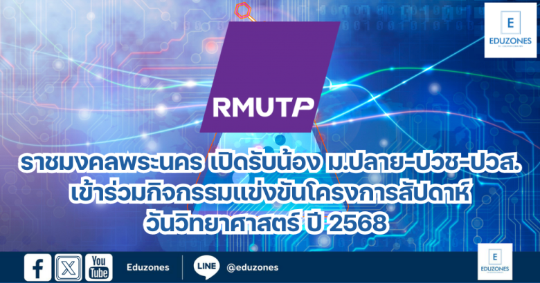 EZ Webmaster August 7, 2025 ราชมงคลพระนคร เปิดรับน้อง ม.ปลาย-ปวช-ปวส. เข้าร่วมกิจกรรมแข่งขันโครงการสัปดาห์วันวิทยาศาสตร์ ปี 2568 EZ Webmaster August 7, 2025 คณะวิทยาศาสตร์และเทคโนโลยี มหาวิทยาลัยเทคโนโลยีราชมงคลพระนคร ขอเชิญนักเรียนระดับมัธยมศึกษาตอนปลาย หรือระดับประกาศนียบัตรวิชาชีพ (ปวช./ปวส.) เข้าร่วมแข่งขัน และกิจกรรมงานสัปดาห์วันวิทยาศาสตร์ ปี 2568 ในวันศุกร์ที่ 15 สิงหาคม 2568 ณ คณะวิทยาศาสตร์และเทคโนโลยี ราชมงคลพระนคร ศูนย์พระนครเหนือ ตั้งแต่เวลา 08.30-16.30 น. โดยภายในงานมีการแข่งขันทักษะทางวิชาการประเภทต่าง ๆ ชิงเงินรางวัลรวมกว่า 15,000 บาท พร้อมเกียรติบัตร ได้แก่ 1.การแข่งขันเขียนโปรแกรมภาษา C หรือ C++ 2.การแข่งขันสนุกคิดกับคณิตศาสตร์… Continue Reading