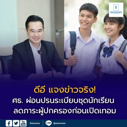 EZ Webmaster April 19, 2026 ข่าวจริง! ศธ. ผ่อนปรนระเบียบชุดนักเรียน ลดภาระผู้ปกครองก่อนเปิดเทอม EZ Webmaster April 19, 2026 ข่าวจริง! ศธ. ผ่อนปรนระเบียบชุดนักเรียน ลดภาระผู้ปกครองก่อนเปิดเทอม หลายคนอาจเห็นข่าวนี้แพร่กระจายในโซเชียลมีเดียและตั้งคำถามว่าจริงหรือไม่ ล่าสุด ศูนย์ต่อต้านข่าวปลอมประเทศไทย (AFNC) ร่วมกับเพจทางการ ศธ.360 องศา ตรวจสอบและยืนยันแล้วว่า เป็น “ข่าวจริง” ศธ. ประกาศ 3 มาตรการเร่งด่วน ลดภาระก่อนเปิดเทอม กระทรวงศึกษาธิการเดินหน้าขับเคลื่อน “วาระเร่งด่วนที่สุด” รับมือวิกฤตค่าครองชีพที่กระทบผู้ปกครองโดยตรงในช่วงใกล้เปิดภาคเรียน โดยประกาศ 3 มาตรการสำคัญ ได้แก่ 1. ปลดล็อกระเบียบสถานศึกษาที่ไม่จำเป็น เปิดทางให้โรงเรียนยืดหยุ่นกฎระเบียบที่เป็นภาระโดยไม่ก่อให้เกิดประโยชน์ทางการศึกษา 2. จัดหาและตรึงราคาอุปกรณ์การเรียน เพื่อให้เด็กทุกคนสามารถเข้าถึงอุปกรณ์ที่จำเป็นในราคาที่เป็นธรรม… Continue Reading