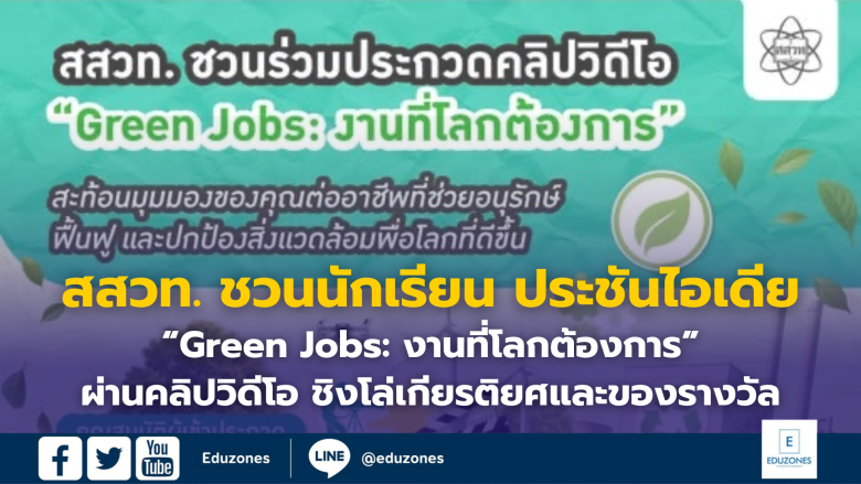 EZ Webmaster November 7, 2025 สสวท. ชวนนักเรียน ประชันไอเดีย “Green Jobs: งานที่โลกต้องการ” ผ่านคลิปวิดีโอ ชิงโล่เกียรติยศและของรางวัล EZ Webmaster November 7, 2025 สสวท. ชวนนักเรียน ประชันไอเดีย “Green Jobs: งานที่โลกต้องการ” ผ่านคลิปวิดีโอ ชิงโล่เกียรติยศและของรางวัล สถาบันส่งเสริมการสอนวิทยาศาสตร์และเทคโนโลยี (สสวท.) ขอเชิญชวนนักเรียนระดับประถมศึกษา มัธยมศึกษาตอนต้น และมัธยมศึกษาตอนปลาย ทั่วประเทศ ร่วมสร้างสรรค์และส่งผลงาน คลิปวิดีโอความยาว 3–5 นาที ในหัวข้อ “Green Jobs: งานที่โลกต้องการ” เพื่อสะท้อนมุมมองต่ออาชีพที่ช่วยอนุรักษ์ ฟื้นฟู หรือปกป้องสิ่งแวดล้อมสู่โลกที่ดีขึ้น งานสีเขียว (Green Jobs) คือ งานที่มีส่วนช่วยในการลดการใช้ทรัพยากร ลดการปล่อยแก๊สเรือนกระจก… Continue Reading