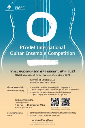 tui sakrapee April 12, 2023 สถาบันดนตรีกัลยาณิวัฒนา และ โครงการแข่งขันกีตาร์ประเภทรวมวง เชิญเข้าร่วมงานการแข่งขัน “วงดนตรีกีตาร์คลาสสิกนานาชาติ 2023” tui sakrapee April 12, 2023 สถาบันดนตรีกัลยาณิวัฒนา และ โครงการแข่งขันกีตาร์ประเภทรวมวง / PGVIM Activities on Guitar Ensemble Competition ขอเชิญเข้าร่วมงาน “การแข่งขันวงดนตรีกีตาร์คลาสสิกนานาชาติ 2023” ในวันเสาร์ที่ 24 มิถุนายน 2566 / Welcome to “PGVIM Internation Guitar Ensemble Competition 2023” on Saturday 24th June 2023… Continue Reading