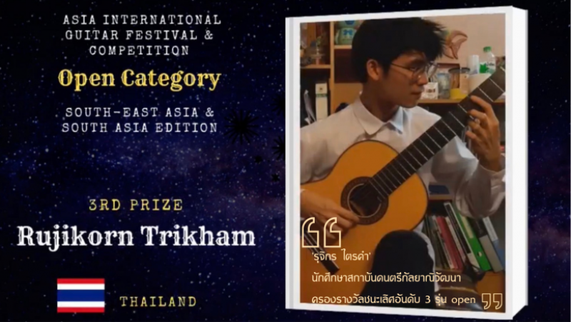 tui sakrapee October 22, 2021 นักศึกษาสถาบันดนตรีกัลยาณิวัฒนาโชว์ฝีมือคว้ารางวัลชนะเลิศอันดับที่ 3 ในรุ่น open การแข่งขันกีตาร์คลาสสิกระดับนานาชาติ tui sakrapee October 22, 2021 นักศึกษาสถาบันดนตรีกัลยาณิวัฒนา “รุจิกร ไตรคำ” สร้างชื่อให้แก่สถาบัน โดยคว้ารางวัลชนะเลิศอันดับที่ 3 ในรุ่น open การแข่งขันกีตาร์คลาสสิก Asia International Guitar Competition 2021 ที่จัดขึ้นเป็นประจำทุกปี โดยมีการแข่งขันทั้งหมดสองรุ่นคือ 1. รุ่น Junior อายุต่ำกว่า 18 ปี 2. รุ่น Open ไม่จำกัดอายุ โดยในปีนี้จะโฟกัสไปที่ประเทศเอเชียใต้และเอเชียตะวันออกเฉียงใต้ นักศึกษาสถาบันดนตรีกัลยาณิวัฒนา นายรุจิกร ไตรคำ ได้รับรางวัลชนะเลิศอันดับที่ 3… Continue Reading