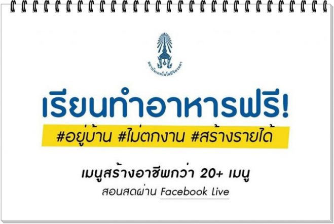 tui sakrapee April 11, 2020 สถาบันเทคโนโลยีจิตรลดา เปิดคอร์สสอนทำอาหาร เรียนฟรี! ไม่มีค่าใช้จ่าย tui sakrapee April 11, 2020 อาหารหวานคาว ขนม น้ำสมุนไพร มีให้เรียนพร้อมสรรพ “สถาบันเทคโนโลยีจิตรลดา” เปิดคอร์สสอนทำอาหาร เรียนฟรี! ไม่มีค่าใช้จ่าย วิธีการสมัคร 1. กดติดตามเพจ “ศูนย์บริการวิชาการ สถาบันเทคโนโลยีจิตรลดา” https://www.facebook.com/AcademicServiceCentreCDTI 2. รอการแจ้งเตือน เมื่อมีการ Live สดจากทางเพจ (หรือ เข้ามาชมที่หน้าเพจ ในวันและเวลาตามตารางการสอนของแต่ละหัวข้อ) Continue Reading
