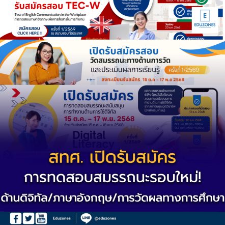 EZ Webmaster October 18, 2025 สทศ. เปิดรับสมัครการทดสอบสมรรถนะรอบใหม่! EZ Webmaster October 18, 2025 📢 สทศ. เปิดรับสมัครการทดสอบสมรรถนะรอบใหม่!สำหรับผู้ที่ต้องการพัฒนาทักษะด้านดิจิทัล ภาษาอังกฤษ และการวัดผลทางการศึกษา 💡 สมัครได้ตั้งแต่ 15 ตุลาคม – 17 พฤศจิกายน 2568อย่าพลาดโอกาสยกระดับสมรรถนะเพื่อก้าวต่อในสายอาชีพ! 🚀 🎯 การทดสอบที่เปิดรับสมัคร 1️⃣ การทดสอบสมรรถนะสนับสนุนการทำงานด้านการใช้ดิจิทัล (DL)🖥️ เพื่อประเมินความสามารถในการใช้เทคโนโลยีดิจิทัลในการทำงาน📍 รายละเอียดเพิ่มเติม: คลิกที่นี่ 2️⃣ การทดสอบภาษาอังกฤษเพื่อการสื่อสารในการทำงาน (TEC-W)🌎 วัดความสามารถในการใช้ภาษาอังกฤษเพื่อการสื่อสารในสถานที่ทำงาน📍 รายละเอียดเพิ่มเติม: คลิกที่นี่ 3️⃣ การทดสอบวัดสมรรถนะทางด้านการวัดและประเมินผลการเรียนรู้📚 สำหรับครูและบุคลากรทางการศึกษาที่ต้องการพัฒนาทักษะด้านการวัดผล📍 รายละเอียดเพิ่มเติม:… Continue Reading