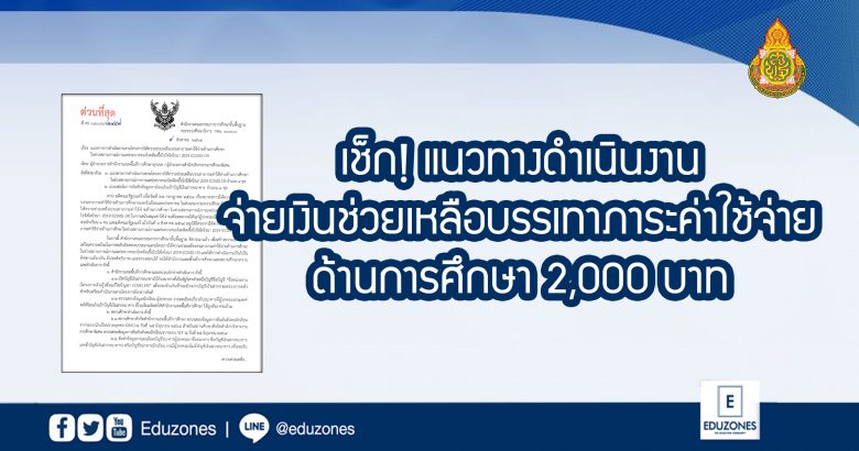 EZ Webmaster August 9, 2021 เช็ก! แนวทางดำเนินงานจ่ายเงินช่วยเหลือบรรเทาภาระค่าใช้จ่ายด้านการศึกษา 2,000 บาท EZ Webmaster August 9, 2021 ตามมติ คณะรัฐมนตรี เกี่ยวกับมาตรการให้ความช่วยเหลือบรรเทาภาระค่าใช้จ่ายด้านการศึกษาของครัวเรือนและประชาชน ในส่วนของกระทรวงศึกษาธิการ ที่มีมาตรการให้ความช่วยเหลือบรรเทาภาระค่าใช้จ่ายด้านการศึกษา ในช่วงสถานการณ์การแพร่ระบาดของโรคติดเชื้อไวรัสโคโรนา (COVID-19) ในการสนับสนุนค่าใช้จ่ายเพื่อลดภาระให้แก่ผู้ปกครองในอัตรา 2,000 บาท ต่อนักเรียน 1 คนนั้น เพื่อสร้างความเข้าใจและเตรียมความพร้อมในการขอรับจัดสรรงบประมาณตามโครงการ ทางสำนักงานคณะกรรมการการศึกษาขั้นพื้นฐานจึงขอให้สำนักงานเขตพื้นที่การศึกษาและสถานศึกษาดำเนินการตามแนวทาง ดังนี้ สำนักงานเขตพื้นที่การศึกษา ดำเนินการดังนี้ เปิดบัญชีเงินฝากธนาคารไว้กับธนาคารที่เป็นรัฐวิสาหกิจหนึ่งบัญชีชื่อบัญชี “ชื่อหน่วยงาน (โครงการเงินกู้เพื่อแก้ไขปัญหา COVID-19)” เพื่อรองรับเงินที่ขอเบิกจากบัญชีเงินฝากกระทรวงการคลังพร้อมส่งข้อมูลชื่อและเลขที่บัญชีเงินฝากธนาคารให้กรมบัญชีกลางหรือสำนักงานคลังจังหวัด แล้วแต่กรณีเพื่อให้กรมบัญชีกลางหรือสำนักงานคลังจังหวัดจัดทำข้อมูลหลักผู้ขาย (ปฏิบัติตามหนังสือกระทรวงการคลังด่วนที่สุด ที่ กค 0402.2/ ว 75 ลงวันที่ 24… Continue Reading