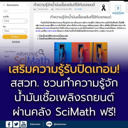 เสริมความรู้รับปิดเทอม! สสวท. ชวนทำความรู้จักน้ำมันเชื้อเพลิงรถยนต์ ผ่านคลัง SciMath ฟรี! EZ WebmasterMarch 20, 2026 ท่ามกลางสถานการณ์ราคาน้ำมันที่ผันผวนและมีแนวโน้มสูงขึ้นจากปัจจัยด้านพลังงานโลกทั้งการเปลี่ยนแปลงของตลาดพลังงาน นโยบายสิ่งแวดล้อม และสถานการณ์ระหว่างประเทศที่กระทบต่อการผลิตและขนส่งน้ำมัน ซึ่งส่งผลต่อค่าครองชีพและการใช้ชีวิตในปัจจุบัน สถาบันส่งเสริมการสอนวิทยาศาสตร์และเทคโนโลยี (สสวท.) ชวนเยาวชน ครู และประชาชนทั่วไป เรียนรู้และทำความรู้จักน้ำมันเชื้อเพลิงที่ใช้กับรถยนต์ ผ่านคลังความรู้ SciMath สสวท. ที่อธิบายตั้งแต่ประเภทของน้ำมันเชื้อเพลิง ซึ่งมีคุณสมบัติแตกต่างกันตามลักษณะการเผาไหม้ของเครื่องยนต์ รวมถึงเชื้อเพลิงทางเลือกอย่างแก๊สโซฮอล์ ที่เป็นการผสมเอทานอลกับน้ำมันเบนซินในสัดส่วนต่าง ๆ ตลอดจนแนวทางการเลือกใช้เชื้อเพลิงให้เหมาะสมกับรถยนต์แต่ละประเภท เนื้อหาเข้าใจง่าย เชื่อมโยงกับชีวิตประจำวัน ช่วยเสริมความรู้ด้านวิทยาศาสตร์พลังงานและการใช้ทรัพยากรอย่างรู้คุณค่า เรียนรู้ได้ฟรีที่ https://www.scimath.org/article-science/item/7473 “16 ปี รางวัลคนดีประเทศไทย” เชิดชูพลังสื่อสร้างสรรค์เพื่อการศึกษา Eduzones คว้ารางวัลสื่อสร้างสรรค์เพื่อเด็กและเยาวชน ปี 2569 EZ WebmasterMarch 19, 2026 🎖️ “16 ปี รางวัลคนดีประเทศไทย” เชิดชูพลังสื่อสร้างสรรค์เพื่อการศึกษา Eduzones คว้ารางวัลสื่อสร้างสรรค์เพื่อเด็กและเยาวชน ปี 2569 มูลนิธิคนดี (ประเทศไทย) สมาคมนักข่าวอาชญากรรมแห่งประเทศไทย ร่วมกับ บริษัท ซีพี ออลล์ จำกัด (มหาชน)…