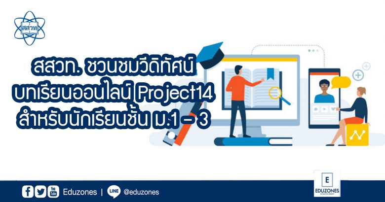 EZ Webmaster August 24, 2021 ชวนน้องๆ ม.4-6 ทบทวนบทเรียนกับวิดีทัศน์บทเรียนออนไลน์ Project14 จาก สสวท. EZ Webmaster August 24, 2021 สำหรับน้องๆ ชั้นมัธยมศึกษาปีที่ 4-6 ที่กำลังหาบทเรียนสำหรับการเรียน หรือทบทวนบทเรียนออนไลน์ในระหว่างอยู่ที่บ้าน ขณะนี้สถาบันส่งเสริมการสอนวิทยาศาสตร์และเทคโนโลยี (สสวท.) ได้จัดทำสื่อการสอนเป็นวิดีทัศน์บทเรียนออนไลน์ที่น้องๆ สามารถเข้าไปทบทวนบทเรียนกันได้ฟรี ซึ่งบทเรียนวีดิทัศน์ออนไลน์จาก สสวท.นี้ เป็นบทเรียนออนไลน์วิชาวิทยาศาสตร์ คณิตศาสตร์และเทคโนโลยี ภายใต้ชื่อ Project 14 ซึ่งจะเป็นการรวมวีดิทัศน์การสอนรายวิชาเพิ่มเติมระดับชั้นประถมศึกษาถึงมัธยมปลาย โดยสำหรับชั้นมัธยมศึกษาตอนปลายจะมีบทเรียนการเรียนในรูปแบบสิดีทัศน์ พร้อมทั้งมีการยกเหตุการณ์ที่เกิดขึ้นในชีวิตจริงมาสอน รวมถึงการทดลองและกิจกรรมท้ายบทเรียนไว้สำหรับทำการทดสอบหลังเรียนอีกด้วย โดยนอกจากนักเรียนแล้ว คุณครูและผู้ปกครองสามารถนำเอาวีดิทัศน์จาก Project 14 ไปใช้เป็นสื่อการสอนได้อีกด้วย ผู้ที่สนใจสามารถสามารถเข้าไปศึกษารายละเอียดเพิ่มเติมได้ที่เว็บไซต์ >>> https://proj14.ipst.ac.th หรือทางแฟนเพจ Project 14… Continue Reading