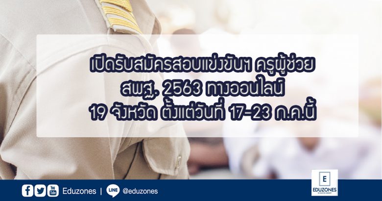 EZ Webmaster July 11, 2020 เปิดรับสมัครสอบแข่งขันฯ ครูผู้ช่วย สพฐ. 2563 ทางออนไลน์ 19 จังหวัด ตั้งแต่วันที่ 17-23 ก.ค.นี้ EZ Webmaster July 11, 2020 สำนักงานศึกษาธิการจังหวัด เปิดรับสมัครสอบแข่งขันเพื่อบรรจุและแต่งตั้งบุคคลเข้ารับราชการเป็นข้าราชการครูและบุคลากรทางการศึกษา ตำแหน่งครูผู้ช่วย สังกัดสำนักงานคณะกรรมการการศึกษาขั้นพื้นฐาน ปี พ.ศ. 2563 โดยจะเปิดรับสมัครทางออนไลน์ 19 จังหวัด ตั้งแต่วันที่ 17-23 กรกฎาคม 2563 สำหรับจังหวัดที่เหลือสมัครด้วยตนเองตามสถานที่ที่กำหนด จังหวัดที่เปิดสมัครสอบทางออนไลน์ ได้แก่ 1.เพชรบูรณ์ >>> คลิก 2.สมุทรปราการ >>> คลิก 3.อุดรธานี >>> คลิก 4.นราธิวาส >>> คลิก 5.ลำปาง… Continue Reading