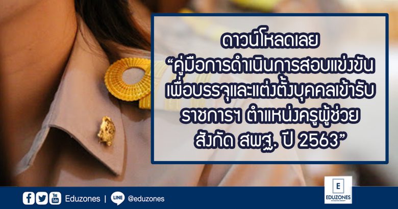 EZ Webmaster July 8, 2020 ดาวน์โหลดเลย “คู่มือการดำเนินการสอบแข่งขัน เพื่อบรรจุและแต่งตั้งบุคคลเข้ารับราชการฯ ตำแหน่งครูผู้ช่วย สังกัด สพฐ. ปี 2563” EZ Webmaster July 8, 2020 ตามที่ ก.ค.ศ. ได้กำหนดหลักเกณฑ์และวิธีการสอบแข่งขันเพื่อบรรจุและแต่งตั้งบุคคลเข้ารับราชการเป็นข้าราชการครูและบุคลากรทางการศึกษา ตำแหน่งครูผู้ช่วย ตามหนังสือสำนักงาน ก.ค.ศ. ที่ ศธ ๐๒๐๖.๖/๑๔ ลงวันที่ 22 พฤษภาคม 2563 นั้น ทางสำนักงานคณะกรรมการการศึกษาขั้นพื้นฐานจึงจัดทำ “คู่มือการดำเนินการสอบแข่งขัน เพื่อบรรจุและแต่งตั้งบุคคลเข้ารับราชการฯ ตำแหน่งครูผู้ช่วย สังกัด สพฐ. ปี 2563” เพื่อให้ดำเนินการสอบแข่งขันและแต่งตั้งบุคคลในตำแหน่งครูผู้ช่วย เป็นไปด้วยความเรียบร้อย ถูกต้องตามหลักเกณฑ์ที่ทาง ก.ค.ศ. กำหนด โดยคู่มือเล่มนี้จะมีเนื้อหาตั้งแต่วิธีการดำเนินการสอบแข่งขันและแต่งตั้งในตำแหน่งครูผู้ช่วย สังกัดสพฐ. ปี… Continue Reading