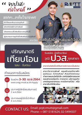 tui sakrapee April 19, 2021 รับตรง จบแล้วมีงานรองรับ100% เรียน “สาขาวิชาเทคโนโลยีการพิมพ์และบรรจุภัณฑ์” มทร.ธัญบุรี tui sakrapee April 19, 2021 ผู้จบปวส.ที่ต้องการศึกษาต่อปริญญาตรีหลักสูตรเทียบโอน สาขาวิชาเทคโนโลยีการพิมพ์และบรรจุภัณฑ์ มทร.ธัญบุรี กำลังเปิดรับสมัครรอบรับตรง วันนี้ – 30 เม.ย. 2564 นี้ รอบรับตรง รับสมัครออนไลน์ คลิก https://apply.rmutt.ac.th จุดเด่นของหลักสูตร 📌หลักสูตรมาตรฐานเปิดมานานกว่า 30 ปี 📌จบแล้วมีงานรองรับ100% 📌หลักสูตรเทียบโอน รับทุกสาขาวิชา เกรดเฉลี่ย 2.00++ สอบถามเพิ่มเติม โทร.087-5181624 หรือ inbox ที่ เทคโนโลยีการพิมพ์ดิจิทัลและบรรจุภัณฑ์ ราชมงคลธัญบุรี Continue Reading