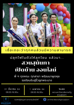 มทร.ธัญบุรี พร้อมปั้นบัณฑิตสู่ยุค NEXT GEN การันตีความสำเร็จด้วยคลื่นมหาชน tui sakrapeeDecember 4, 2025 มหาวิทยาลัยเทคโนโลยีราชมงคลธัญบุรี (มทร.ธัญบุรี) สร้างปรากฏการณ์ครั้งสำคัญในแวดวงการศึกษาไทยผ่านงาน ‘RMUTT NEXT GEN: Open House 2026 : เปิดประตูสู่ราชมงคลธัญบุรี 69’ เมื่อวันที่ 27 และ 28 พฤศจิกายน 2568… ม.กรุงเทพ จัดงาน The Shape of Tomorrow: Bangkok Art & Architecture @Dib Bangkok tui sakrapeeDecember 4, 2025 คณะสถาปัตยกรรมศาสตร์ มหาวิทยาลัยกรุงเทพ จัดงาน “The Shape of Tomorrow: Bangkok Art & Architecture” เปิดพื้นที่แลกเปลี่ยนองค์ความรู้และประสบการณ์ระหว่างนักวิชาการ ผู้เชี่ยวชาญในวงการสถาปัตยกรรมที่มุ่งเน้นแนวคิดการออกแบบที่ตอบโจทย์ความยั่งยืน (Sustainability) และการปรับใช้พื้นที่อาคารให้เกิดคุณค่าใหม่ (Adaptive Reuse) โดยปรับเปลี่ยนพื้นที่เดิมให้กลายเป็นพื้นที่สร้างสรรค์อย่าง… มหาวิทยาลัยราชภัฏสวนสุนันทา จับมือ “เอ็ม พาวเวอร์ คอร์ปอเรชั่น” ลงนาม MOU ขับเคลื่อนระบบจัดการวัสดุรีไซเคิล สู่มหาวิทยาลัยสีเขียวอย่างยั่งยืน tui sakrapeeDecember 4, 2025 เมื่อวันพฤหัสบดีที่ 4 ธันวาคม 2568 มหาวิทยาลัยราชภัฏสวนสุนันทา จัดพิธีลงนามบันทึกความเข้าใจ (MOU) ร่วมกับบริษัท เอ็ม พาวเวอร์ คอร์ปอเรชั่น จำกัด ณ ห้องประชุมสภามหาวิทยาลัย เพื่อขับเคลื่อนการพัฒนาระบบการจัดการวัสดุรีไซเคิลภายในมหาวิทยาลัยอย่างเป็นรูปธรรมและยั่งยืน พิธีลงนามในครั้งนี้มีวัตถุประสงค์เพื่อพัฒนากลไกการจัดการวัสดุรีไซเคิลให้มีประสิทธิภาพยิ่งขึ้น ส่งเสริมการคัดแยกขยะอย่างถูกต้อง เพิ่มคุณค่าและสร้างรายได้จากวัสดุที่สามารถนำกลับมาใช้ใหม่… สุดเจ๋ง! สถานศึกษาอาชีวะ รับรางวัลโครงการชีววิถีฯ ระดับประเทศ ประจำปี 2568 สานต่อปณิธานหลักปรัชญาเศรษฐกิจพอเพียงของพ่อหลวงรัชกาลที่ 9 EZ WebmasterDecember 3, 2025 สุดเจ๋ง! สถานศึกษาอาชีวะ รับรางวัลโครงการชีววิถีฯ ระดับประเทศ ประจำปี 2568 สานต่อปณิธานหลักปรัชญาเศรษฐกิจพอเพียงของพ่อหลวงรัชกาลที่ 9 วันนี้ (1 ธ.ค. 68) นายยศพล เวณุโกเศศ เลขาธิการคณะกรรมการการอาชีวศึกษา มอบหมายให้ นายสง่า แต่เชื้อสาย… Search for: Search Tag: เปิดบ้านสวนสุนันทาออนไลน์ tui sakrapee March 5, 2021 โอกาสดีมีใกล้ตัว! มหกรรมเปิดบ้านออนไลน์ “สวนสุนันทา” รีบคว้าอนาคตสู่ “ราชภัฏอันดับ1” tui sakrapee March 5, 2021 “สวนสุนันทา” พร้อมเปิดทุกซอกทุกมุมบ้านให้น้อง ๆ นักเรียนม.ปลายที่ต้องการเข้าเรียนต่อได้ซักถามข้อมูลทุกด้าน ในมหกรรมเปิดบ้านสวนสุนันทาออนไลน์ ครั้งที่ 1 เพื่อรองรับการรับสมัครทีแคส รอบ 2 โควตา ซึ่งยังมีน้อง ๆ จำนวนมากสงสัยและคาใจในหลาย ๆ เรื่อง เปิดบ้านออนไลน์จุใจ ทุกคณะทุกสาขาพร้อมต้อนรับ “สวนสุนันทา” เปิดประวัติศาสตร์หน้าใหม่ ทุกคณะทุกสาขาจับมือเปิดรั