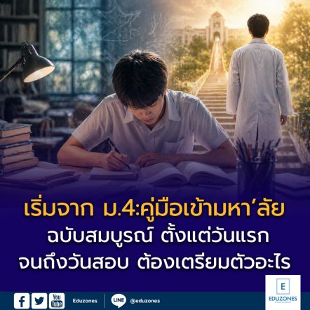 EZ Webmaster April 28, 2026 เริ่มจาก ม.4: คู่มือวางแผนเข้ามหาวิทยาลัยฉบับสมบูรณ์ ตั้งแต่วันแรกจนถึงวันสอบ EZ Webmaster April 28, 2026 เริ่มจาก ม.4: คู่มือวางแผนเข้ามหาวิทยาลัยฉบับสมบูรณ์ ตั้งแต่วันแรกจนถึงวันสอบ น้องๆ หลายคนเข้า ม.4 ด้วยความรู้สึกว่า “ยังมีเวลาอีกตั้ง 3 ปี” แต่ความจริงคือ 3 ปีในมัธยมปลายผ่านไปเร็วกว่าที่คิด และสิ่งที่ตัดสินว่าน้องจะได้เรียนในที่ที่อยากไปหรือไม่ ส่วนใหญ่ถูกกำหนดในช่วง ม.4 และ ม.5 ไม่ใช่ ม.6 บทความนี้ Eduzones จะพาน้องๆ วางแผนอย่างชาญฉลาด ไม่ใช่แค่ “เรียนเยอะๆ” แต่คือการวางระบบที่ยั่งยืนและได้ผลจริง ทำความเข้าใจก่อน: TCAS คืออะไร และทำไมต้องรู้ตั้งแต่… Continue Reading