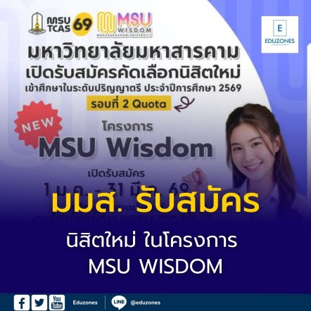 EZ Webmaster January 5, 2026 มมส. รับสมัคร นิสิตใหม่ ในโครงการ MSU WISDOM EZ Webmaster January 5, 2026 มมส. รับสมัคร นิสิตใหม่ ในโครงการ MSU WISDOM รับสมัคร : 1 ม.ค. – 31 มี.ค.69 ดูเงื่อนไขการสมัคร และสมัครที่นี่ https://admission.msu.ac.th สอบถามข้อมูลการสมัคร โทร 043754377 Page เรียนต่อ มมส Mahasarakham university Continue Reading