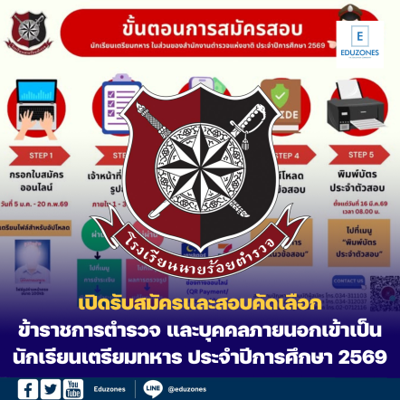 สหประชาชาติเปิดโอกาส! UNITAR เปิดหลักสูตร “Free and Open Courses” ปี 2026 เรียนฟรี คนไทยสมัครได้ตลอดปี เพิ่มทักษะสู่เวทีโลก EZ WebmasterJanuary 7, 2026 สหประชาชาติเปิดโอกาส! UNITAR เปิดหลักสูตร “Free and Open Courses” ปี 2026 เรียนฟรี คนไทยสมัครได้ตลอดปี เพิ่มทักษะสู่เวทีโลก องค์การสหประชาชาติ โดย United Nations Institute for… KMUTNB Techno Park จัดการแข่งขันหุ่นยนต์ ท้าประลองฝีมือด้าน Automation, Robot & AI ชิงเงินรางวัลรวมกว่า 250,000 บาท EZ WebmasterJanuary 7, 2026 KMUTNB Techno Park จัดการแข่งขันหุ่นยนต์ ท้าประลองฝีมือด้าน Automation, Robot & AI ชิงเงินรางวัลรวมกว่า 250,000 บาท อุทยานเทคโนโลยี (KMUTNB Techno Park) มหาวิทยาลัยเทคโนโลยีพระจอมเกล้าพระนครเหนือ (มจพ.)… 🎯 สพฐ. เปิดรับสมัครนักเรียนและครู เข้าร่วมโครงการ Summer Camp ต่างประเทศ ปี 2569 EZ WebmasterJanuary 4, 2026 🎯 สพฐ. เปิดรับสมัครนักเรียนและครูเข้าร่วมโครงการ Obec Summer Camp 2026 สำนักงานคณะกรรมการการศึกษาขั้นพื้นฐาน (สพฐ.)เชิญชวนนักเรียน เยาวชนไทย และครูในสังกัดสมัครเข้ารับการคัดเลือกเพื่อเข้าร่วมกิจกรรม Summer Camp ระดับนานาชาติโดยไม่เสียค่าใช้จ่าย เพื่อพัฒนาสมรรถนะสากลและเสริมสร้างศักยภาพสู่การเป็น “ผู้นำเยาวชนต้นแบบ สพฐ.” 🌟… เปิดโอกาสอาสาสมัครระดับโลก สมัครได้จากไทย UN Online Volunteers EZ WebmasterDecember 30, 2025 เปิดโอกาสอาสาสมัครระดับโลก สมัครได้จากไทย UN Online Volunteers ภายใต้ United Nations Volunteers (UNV) โครงการ UN Online Volunteers ภายใต้ United Nations Volunteers… Search for: Search Tag: โรงเรียนเตรียมทหาร EZ Webmaster January 5, 2026 เปิดรับสมัครและสอบคัดเลือกข้าราชการตำรวจ และบุคคลภายนอกเข้าเป็นนักเรียนเตรียมทหาร ในส่วนของสำนักงานตำรวจแห่งชาติ ประจำปีการศึกษา 2569 EZ Webmaster January 5, 2026 เปิดรับสมัครและสอบคัดเลือกข้าราชการตำรวจ และบุคคลภายนอกเข้าเป็นนักเรียนเตรียมทหาร ในส่วนของสำนักงานตำรวจแห่งชาติ ประจำปีการศึกษา 2569 สำนักงานตำรวจแห่งชาติ ขอประชาสัมพันธ์การเปิดรับสมัครและสอบคัดเลือกข้าราชการตำรวจ และบุคคลภายนอกเพื่อเข้าศึกษาเป็นนักเรียนเตรียมทหาร ในส่วนของสำนักงานตำรวจแห่งชาติประจำปีการศึกษา 2569 โดยมีวัตถุประสงค์เพื่อคัดเลือกผู้ที่มีความรู้ ความสามารถ มีคุณธรรม จริยธรรม และมีความพร้อมทั้งด้านร่างกายและจิตใจ เข้ารับการฝึกศึกษาเพื่อเป็นกำลังสำคัญของประเทศในอนาคต สามารถสมัครได้ที่ : คลิ๊กที่นี่เพื่อสมัคร สอบถามการกรอกข้อมูล : โทร 034-312037 สอบถามคุณสมบัติผู้สมัคร : โทร 034-311103 Continue Reading EZ Webmaster September 9, 2025 รวมหลักสูตรการศึกษา โรงเรียนนายร้อยทั้ง 4 เหล่าทัพ EZ Webmaster September 9, 2025 รวมหลักสูตรการศึกษา โรงเรียนนายร้อยทั้ง 4 เหล่าทัพ หลักสูตรการศึกษาของสถาบันโรงเรียนนายร้อยทั้ง 4 เหล่าทัพ ที่ทางเราได้รวบรวมข้อมูล เพื่อเป็นประโยชน์ให้กับน้องๆ ที่มีความสนใจอยากจะเป็นว่าที่ร้อยตรี จะ