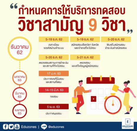 EZ Webmaster December 4, 2019 กำหนดการให้บริการทดสอบวิชาสามัญ 9 วิชา EZ Webmaster December 4, 2019 คุณสมบัติผู้สมัครสอบ ผู้สมัครสอบต้องเป็นผู้ที่กําลังศึกษาอยู่ในระดับชั้นมัธยมศึกษาปีที่ ๖ หรือเทียบเท่าระดับ ชั้นมัธยมศึกษาปีที่ ๖ หรือผู้ที่จบการศึกษาระดับชั้นมัธยมศึกษาปีที่ ๖ หรือเทียบเท่าขึ้นไป กำหนดการดำเนินการ ลงทะเบียนขอรหัสผ่านเข้าระบบ : 5-19 ธ.ค. 62 สมัครสอบ เลือกวิชา เลือกจังหวัดและเขต/อำเภอที่จะไปสอบ : 5-19 ธ.ค. 62 พิมพ์ใบสมัครสอบ ชำระเงินค่าสมัครสอบ : 5-20 ธ.ค. 62 ตรวจสอบสถานะการชำระเงิน และการเลือกจังหวัดและเขต/อำเภอในการสอบ : 5-20 ธ.ค. 62 ตรวจสอบ… Continue Reading