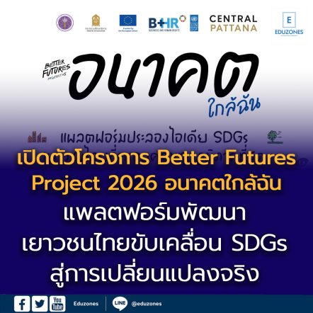 EZ Webmaster April 23, 2026 เซ็นทรัลพัฒนา ผนึกกำลัง UNDP กระทรวงศึกษาธิการ กระทรวงการอุดมศึกษาฯ และพันธมิตร เปิดตัวโครงการ “Better Futures Project 2026: อนาคตใกล้ฉัน” แพลตฟอร์มพัฒนาเยาวชนไทย ขับเคลื่อน SDGs สู่การเปลี่ยนแปลงจริง EZ Webmaster April 23, 2026 กรุงเทพฯ – บริษัท เซ็นทรัลพัฒนา จำกัด (มหาชน) ผู้นำเบอร์หนึ่งอสังหาริมทรัพย์ไทยเพื่อความยั่งยืน ภายใต้วิสัยทัศน์ Imagining better futures for all เชื่อมโยงธุรกิจหลักทั้งศูนย์การค้า, อาคารสำนักงาน, โรงแรม และที่อยู่อาศัยทั่วประเทศ ร่วมกับโครงการพัฒนาแห่งสหประชาชาติ (UNDP) กระทรวงศึกษาธิการ และกระทรวงการอุดมศึกษา วิทยาศาสตร์ วิจัย และนวัตกรรม พร้อมภาคีเครือข่าย เดินหน้าเปิดตัวโครงการ “Better Futures Project 2026: อนาคตใกล้ฉัน”… Continue Reading
