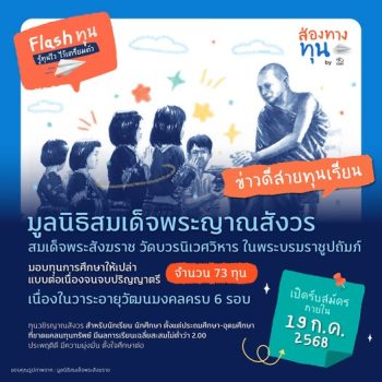 Swedish Institute เปิดรายชื่อหลักสูตร ป.โท ที่สมัครทุน SI Scholarships ปี 2026/2027 แล้ว EZ WebmasterDecember 16, 2025 🇸🇪🎓 Swedish Institute เปิดรายชื่อหลักสูตร ป.โท ที่สมัครทุน SI Scholarships ปี 2026/2027 แล้ว โอกาสเรียนต่อสวีเดนกว่า 400 หลักสูตร จาก 29 มหาวิทยาลัยชั้นนำ รัฐบาลสวีเดนโดย… Jeonbuk National University (JBNU) เปิดรับสมัครทุนบัณฑิตศึกษา ปี 2569 EZ WebmasterDecember 16, 2025 🇰🇷🎓 Jeonbuk National University (JBNU) เปิดรับสมัครทุนบัณฑิตศึกษา ปี 2569 ทุนเรียนต่อปริญญาโท–เอก ประเทศเกาหลีใต้ สำหรับนักศึกษาต่างชาติ ผู้ที่สนใจศึกษาต่อระดับ ปริญญาโทและปริญญาเอก ในประเทศเกาหลีใต้ ไม่ควรพลาดโอกาสนี้Jeonbuk National University (JBNU)… เปิดรับสมัครแล้ว! ทุนเรียนพยาบาล “ปลูกต้นกล้าพยาบาล 3 สถาบัน” ปีการศึกษา 2569 (รอบที่ 2) EZ WebmasterDecember 14, 2025 🩺✨ เปิดรับสมัครแล้ว! ทุนเรียนพยาบาล “ปลูกต้นกล้าพยาบาล 3 สถาบัน” ปีการศึกษา 2569 (รอบที่ 2) โอกาสสำคัญสำหรับน้อง ๆ ที่มีความฝันอยากเป็นพยาบาล แต่ขาดแคลนทุนทรัพย์มูลนิธิป่อเต็กตึ๊ง ร่วมกับ โรงพยาบาลหัวเฉียว และ มหาวิทยาลัยหัวเฉียวเฉลิมพระเกียรติเปิดรับสมัครทุนการศึกษาในโครงการ… ครู-อาจารย์ สกสค. เดินหน้าดูแลครูผู้ได้รับผลกระทบเหตุชายแดน ดร.พีระพันธ์ นำทีมช่วยเหลือถึงศรีสะเกษ tui sakrapeeDecember 17, 2025 ดร.พีระพันธ์ เหมะรัต เลขาธิการคณะกรรมการ สกสค. พร้อมด้วยนายสมาน เวียงปฏิ ศึกษาธิการจังหวัดศรีสะเกษ รักษาการแทนผู้อำนวยการสำนักงาน สกสค. จังหวัดศรีสะเกษ นางวิมลศรี มณฑาทิพย์ ผู้อำนวยการสำนักการคลัง และนางสาวบุญสม เธียรฤกษ์ รักษาการแทนผู้อำนวยการสำนักสวัสดิการครู ลงพื้นที่ศูนย์พักพิงชั่วคราวจังหวัดศรีสะเกษ เพื่อให้กำลังใจและมอบสิ่งของเครื่องอุปโภคบริโภคที่จำเป็นแก่ครูและบุคลากรทางการศึกษาที่ได้รับผลกระทบจากเหตุความไม่สงบในพื้นที่ชายแดนไทย–กัมพูชาเป็นการช่วยบรรเทาความเดือดร้อนในเบื้องต้นให้ถึงมือผู้ได้รับผลกระทบโดยตรง… เลขาธิการ สกสค. ลงพื้นที่อุบลฯ เยี่ยมครูชายแดนไทย–กัมพูชา มอบถุงยังชีพ–จัดงบช่วยเหลือ 7 จังหวัด tui sakrapeeDecember 17, 2025 ดร.พีระพันธ์ เหมะรัต เลขาธิการคณะกรรมการ สกสค. พร้อมด้วยนายวรวิทย์ โสภาพันธ์ (รักษาการผู้อำนวยการสำนักงาน สกสค. จังหวัดอุบลราชธานี) นางวิมลศรี มณฑาทิพย์ ผู้อำนวยการสำนักการคลัง และนางสาวบุญสม เธียรฤกษ์ รักษาการแทนผู้อำนวยการสำนักสวัสดิการครู สำนักงานคณะกรรมการ สกสค. ลงพื้นที่เยี่ยมเยียนมอบถุงยังชีพ และให้กำลังใจแก่ครูและบุคลากรทางการศึกษา… จุฬา – มหิดล ผนึกกำลังยกระดับ “AnthoRice™ Complex” จากงานวิจัยสู่การทดสอบทางคลินิกรพ.ศิริราช EZ WebmasterDecember 17, 2025 จุฬา – มหิดล ผนึกกำลังยกระดับ “AnthoRice™ Complex” จากงานวิจัยสู่การทดสอบทางคลินิกรพ.ศิริราช เมื่