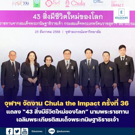 EZ Webmaster December 26, 2025 จุฬาฯ จัดงาน Chula the Impact ครั้งที่ 36 แถลง “43 สิ่งมีชีวิตใหม่ของโลก” นามพระราชทาน เฉลิมพระเกียรติสมเด็จพระกนิษฐาธิราชเจ้า กรมสมเด็จพระเทพรัตนราชสุดา ฯ สยามบรมราชกุมารี EZ Webmaster December 26, 2025 จุฬาฯ จัดงาน Chula the Impact ครั้งที่ 36 แถลง “43 สิ่งมีชีวิตใหม่ของโลก” นามพระราชทาน เฉลิมพระเกียรติสมเด็จพระกนิษฐาธิราชเจ้า กรมสมเด็จพระเทพรัตนราชสุดา ฯ สยามบรมราชกุมารี จุฬาลงกรณ์มหาวิทยาลัย โดยศูนย์สื่อสารองค์กร ร่วมกับคณะวิทยาศาสตร์ จุฬาฯ และภาคีเครือข่ายนักวิจัยด้านอนุกรมวิธานและความหลากหลายทางชีวภาพ จัดงาน Chula the Impact ครั้งที่ 36 ในหัวข้อ “43 สิ่งมีชีวิตใหม่ของโลก” นามพระราชทานจากสมเด็จพระกนิษฐาธิราชเจ้า กรมสมเด็จพระเทพรัตนราชสุดา ฯ สยามบรมราชกุมารี เมื่อวันพฤหัสบดีที่ 25 ธันวาคม… Continue Reading