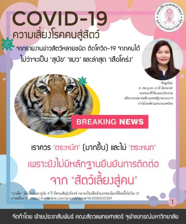 tui sakrapee April 8, 2020 รองคณบดี สัตวแพทย์ จุฬาฯ แนะข่าว “โควิด-19 ในเสือโคร่ง” ควรตระหนัก แต่อย่าตระหนก ยังไม่พบหลักฐานการติดต่อจาก “สัตว์สู่คน” tui sakrapee April 8, 2020 จากรายงานข่าวที่มีการพบเชื้อโควิด-19 ในสัตว์หลายชนิดในต่างประเทศ ไม่ว่าจะเป็น สุนัข แมว และล่าสุด เสือโคร่ง จนก่อให้เกิดความตื่นตระหนกในกลุ่มผู้เลี้ยงสัตว์และปศุสัตว์ ศาสตราจารย์ พ.ญ.ดร. เกวลี ฉัตรดรงค์ รองคณบดีวิจัยและนวัตกรรม คณะสัตวแพทยศาสตร์ จุฬาลงกรณ์มหาวิทยาลัย อดีตนายกสมาคมสัตวแพทย์ผู้ประกอบการบำบัดโรคสัตว์แห่งประเทศไทย ได้ออกมาอธิบายถึงปรากฏการณ์ดังกล่าวว่า ยังไม่มีหลักฐานยืนยันการติดต่อจาก ‘สัตว์เลี้ยงสู่คน’ ดังนั้น ผู้ที่ใกล้ชิดกับสัตว์ สัตว์เลี้ยงและปศุสัตว์ จึงควร “ตระหนัก” ในการดูแลสัตว์เลี้ยงของตนให้ปลอดภัย แต่ไม่ควร “ตระหนก” กับข่าวที่เกิดขึ้น “การตรวจพบเชื้อในเสือโคร่ง ซึ่งเป็นสัตว์ตระกูลแมวที่แสดงอาการทางระบบหายใจในสวนสัตว์ที่เมืองนิวยอร์ค สหรัฐอเมริกานั้น เป็นการติดเชื้อจากพนักงานดูแลสัตว์… Continue Reading