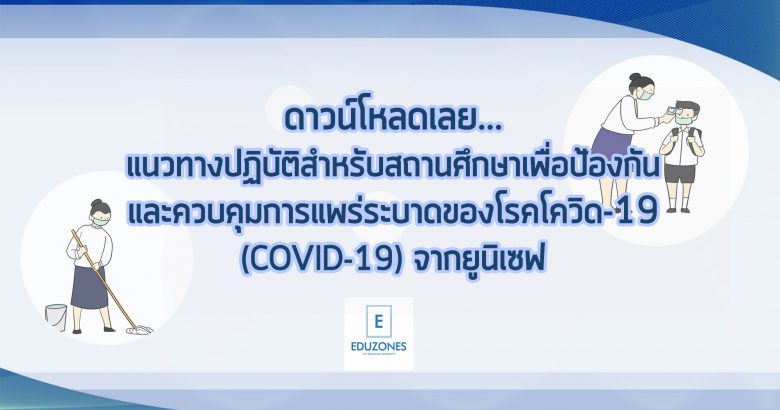 EZ Webmaster May 25, 2020 ดาวน์โหลดเลย…แนวทางปฏิบัติสำหรับสถานศึกษาเพื่อป้องกันและควบคุมการแพร่ระบาดของโรคโควิด-19 (COVID-19) จากยูนิเซฟ EZ Webmaster May 25, 2020 องค์การยูนิเซฟ ประเทศไทย ร่วมกับกระทรวงศึกษาธิการ สำนักบูรณาการกิจการศึกษา สำนักงานปลัดกระทรวงศึกษาธิการ, สำนักพัฒนากิจกรรมนักเรียน และ สำนักงานบริหารการศึกษาพิเศษ สำนักงานคณะกรรมการศึกษาขั้นพื้นฐาน สำนักงานส่งเสริมการศึกษานอกระบบและตามอัธยาศัย กรมส่งเสริมการปกครองส่วนท้องถิ่น กระทรวงมหาดไทย กรมควบคุมโรค กระทรวงสาธารณสุข กองทุนเพื่อความเสมอภาคทางการศึกษา (กสศ.) Save the Children ประเทศไทย มูลนิธิศุภนิมิตแห่งประเทศไทย องค์การแพลน อินเตอร์เนชั่นแนล ประเทศไทย สภากาชาดไทย และองค์การยูเนสโก ประเทศไทย ได้ร่วมกันพัฒนาเอกสาร “แนวทางปฏิบัติสำหรับสถานศึกษาเพื่อป้องกันและควบคุมการแพร่ระบาดของโรคโควิด-19 (COVID-19)” … Continue Reading