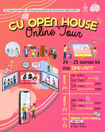 EZ Webmaster April 14, 2021 CU Open House 2021 : Online Tour EZ Webmaster April 14, 2021 สิ้นสุดการรอคอย! พบกับงาน CU Open House 2021 : Online Tour กิจกรรมเปิดรั้วจามจุรี ที่ไม่ว่าคุณจะอยู่ที่ไหน ก็สามารถเข้าร่วมกิจกรรมได้! ใคร #dek64 #dek65 #dek66 ยกมือขึ้น! มาร่วมค้นหาตัวเองกับงาน CU Open House 2021 : Online Tour กันเถอะ! กับงาน CU Open House 2021 :… Continue Reading
