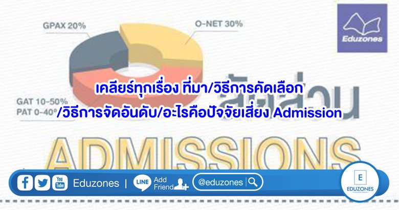 EZ Webmaster May 4, 2020 เคลียร์ทุกเรื่อง ที่มา/วิธีการคัดเลือก/วิธีการจัดอันดับ/อะไรคือปัจจัยเสี่ยง Admission 2563 EZ Webmaster May 4, 2020 แอดมิชชัน ถือเป็นสิ่งสำคัญมากๆอีกเรื่องหนึ่งในชีวิตของน้องๆ ม.6 ในทุกๆปีนะครับ เพราะถือว่าเป็นสะพานในการพาน้องๆไปสู่ความฝันหรือเป้าหมายที่ต้องการหลังจากฝ่าฝันสอบมาอย่างดุเดือดตลอดปีการศึกษาของ ม.6 ซึ่งแน่นอนว่าน้องๆแต่ละคนก็ต้องการความกระจ่างและความมั่นใจมากที่สุดก่อนที่จะทำการเลือกคณะ ซึ่งก็มีหลากหลายคำถามเข้ามาที่พี่แฮนด์มากมายทั้งวิธีการการเลือก แนวโน้มแต่ละคณะ และคำถามอื่นๆ พี่แฮนด์จึงเขียนบทความเพื่อไขข้อสงสัยในหลายเรื่องสำหรับแอดมิชชัน แอดมิชชัน หรือน้องๆอาจจะเรียกว่าแอดกลาง ก็คือการคัดเลือกบุคคลเข้าศึกษาต่อในระดับอุดมศึกษา (Central University Admissions System – CUAS ) จัดการคัดเลือกโดย ทปอ. นำมาใช้ครั้งแรกเมื่อปี 2549 แทนการคัดเลือกแบบเอนทรานซ์นั่นเอง ซึ่งจุดประสงค์หลักที่นำระบบแอดมิชชันมาใช้แทนระบบเก่าอย่างเอนทรานซ์ก็เพราะว่า การเอนทรานซ์ จะเน้นในการสอบเพียงอย่างเดียว ทำให้เด็กๆทิ้งการเรียนในห้องเรียน ไปมุ่งมั่นติวกันเพียงอย่างเดียว แต่การแอดมิชชันจะมีการนำเกรดเฉลี่ยในโรงเรียนมาใช้ด้วย… Continue Reading