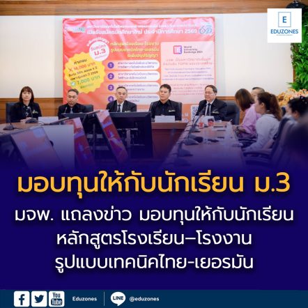 ข่าวประชาสัมพันธ์ (Press Release) “มจพ. แถลงข่าว มอบทุนให้กับนักเรียน ม.3 หลักสูตรโรงเรียน–โรงงาน รูปแบบเทคนิคไทย-เยอรมัน” EZ WebmasterMarch 4, 2026 วันที่ 2 มีนาคม พ.ศ. 2569 มหาวิทยาลัยเทคโนโลยีพระจอมเกล้าพระนครเหนือ (มจพ.) ซึ่งเป็นมหาวิทยาลัย ติดอันดับ Top10 ของประเทศ จัดแถลงข่าว “มอบทุนการศึกษาให้กับนักเรียน ม.3 หลักสูตรโรงเรียน-โรงงาน รูปแบบเทคนิค ไทย–เยอรมัน” อย่างเป็นทางการ… ทุนฟรี 100% ป.ตรี Universitas Widyatama อินโดนีเซีย ร่วมกับ ศอ.บต. ขยายเวลาถึง 7 มี.ค. 2569 EZ WebmasterMarch 3, 2026 🎓 ข่าวดีน้อง ๆ ม.ปลาย! ทุนเรียนฟรี 100% ป.ตรี Universitas Widyatama (เมืองบันดุง) ร่วมกับ ศอ.บต. โอกาสเรียนต่อต่างประเทศแบบ Fully-Funded 100% สำหรับนักเรียนระดับมัธยมปลาย Universitas Widyatama… ทุนเต็มจำนวน Rotary Peace Fellowship 2027/28 เรียนฟรี-บินฟรี-กินอยู่ฟรี เปิดรับคนไทยลุย 8 ประเทศทั่วโลก EZ WebmasterMarch 3, 2026 โอกาสทองของคนไทยสายพัฒนาสังคม 🌍 ทุนเต็มจำนวน Rotary Peace Fellowship 2027/28 เรียนฟรี-บินฟรี-กินอยู่ฟรี ลุย 8 ประเทศทั่วโลก ข่าวดีสำหรับคนไทยสาย NGO ข้าราชการ นักพัฒนาชุมชน หรือผู้ทำงานด้านสันติภาพ Rotary International… CP ALL จับมือ กสศ. เปิดรับสมัคร “ทุนปัญญาภิวัฒน์เพื่อการศึกษา” ปี 2569 เรียนฟรี มีรายได้ จบแล้วมีงานทำ EZ WebmasterFebruary 26, 2026 CP ALL จับมือ กสศ. เปิดรับสมัคร “ทุนปัญญาภิวัฒน์เพื่อการศึกษา” ปี 2569 เรียนฟรี มีรายได้ จบแล้วมีงานทำ บริษัท ซีพี ออลล์ จำกัด (มหาชน) ร่วมกับ กองทุนเพื่อความเสมอภาคทางการศึกษา… ครู-อาจารย์ คุรุสภาเปิดทางครูจบนอก ขอใบอนุญาตสอนได้ | นฤมล นั่งหัวโต๊ะรับรอง 19 หลักสูตร ผ่านสมรรถนะครู 3,450 คน EZ WebmasterMarch 3, 2026 คุรุสภาเปิดทางครูจบนอก ขอใบอนุญาตสอนได้ คณะกรรมการคุรุสภา เห็นชอบรับรอง 19 หลักสูตร จาก 13 สถาบัน พร้อมไฟเขียวผ่านสมรรถนะครู 3,450 คน และเปิดทางรับรองคุณวุฒิครูจบต่างประเทศเพื่อขอใบอนุญาตประกอบวิชาชีพครู การประชุมคณะกรรมการคุรุสภา ครั้งที่ 2/2569 เมื่อวันที่ 26… สพฐ.คุมเข้มรับนักเรียน ม.1 และ ม.4 ปี 2569 สกัดแป๊ะเจี๊ยะ | เตรียมอุดมฯ สอบ 7 มี.ค. คาดสมัครทะลุหมื่น EZ WebmasterMarch 3, 2026 สพฐ.คุมเข้มรับ ม.1 และ ม.4 ปี 2569 สกัดทุจริต “แป๊ะเจี๊ยะ” เตรียมอุดมฯ ฮิต สอบ 7 มี.ค. สำนักงานคณะกรรมการการศึกษาขั้นพื้นฐาน (สพฐ.) ย้ำแนวทางการรับนักเรียนปีการศึกษา 2569 ต้องโปร่งใส… สสวท. ชวนไขปริศนา “ลูกเห็บ” ในพายุฤดูร้อน EZ WebmasterMarch 2, 2026 ในช่วงฤดูร้อน มักปรากฏข่าวภัยธรรมชาติที่สร้างความเสียหายต่อบ้านเรือนและสิ่งปลูกสร้าง โดยเฉพาะเหตุการณ์ “ลมกระโชก” ซึ่งเป็นคำที่ถูกต้อง แตกต่างจากคำว่า “ลมกรรโชก” ที่มีความหมายเกี่ยวข้องกับการข่มขู่ เช่น กรรโชกทรัพย์ เพื่อสร้างความเข้าใจที่ถูกต้องทั้งด้านภาษาและวิทยาศาสตร์ สถาบันส่งเสริมการสอนวิทยาศาสตร์และเทคโ