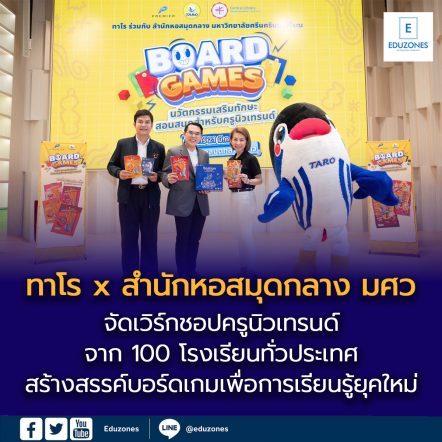 EZ Webmaster April 8, 2026 EZ Webmaster April 8, 2026 ทาโร ผนึกความร่วมมือกับ สำนักหอสมุดกลาง มหาวิทยาลัยศรีนครินทรวิโรฒ (มศว)) สำนักหอสมุดกลาง มศว เดินหน้าสร้างสรรค์โลกแห่งการเรียนรู้ ยกระดับห้องเรียนยุคใหม่ในรูปแบบ Edutainment ภายใต้โครงการ “บอร์ดเกม นวัตกรรมเสริมทักษะ สอนสนุก สำหรับครูนิวเทรนด์” เปลี่ยนห้องเรียนให้ “สนุก คิดเป็น ทำเป็น” สไตล์ Active Learning มอบบอร์ดเกมเพื่อการเรียนรู้100 โรงเรียนทั่วประเทศ พร้อมจัดกิจกรรมเวิร์กชอป เสริมไอเดียคุณครู เสริมทักษะพร้อมสุขภาพที่ดี สอดแทรกแนวคิดรักษ์โลกรับกระแสโลกร้อน พร้อมเปิดเวทีเสวนาบอร์ดเกมกับการศึกษาในศตวรรษที่ 21 ตอบโจทย์การพัฒนาเด็กเจนแอลฟาแบบรอบด้าน … Continue Reading