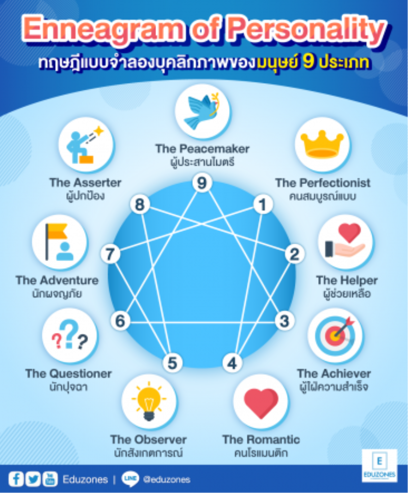 มทร.ธัญบุรี พร้อมปั้นบัณฑิตสู่ยุค NEXT GEN การันตีความสำเร็จด้วยคลื่นมหาชน tui sakrapeeDecember 4, 2025 มหาวิทยาลัยเทคโนโลยีราชมงคลธัญบุรี (มทร.ธัญบุรี) สร้างปรากฏการณ์ครั้งสำคัญในแวดวงการศึกษาไทยผ่านงาน ‘RMUTT NEXT GEN: Open House 2026 : เปิดประตูสู่ราชมงคลธัญบุรี 69’ เมื่อวันที่ 27 และ 28 พฤศจิกายน 2568… ม.กรุงเทพ จัดงาน The Shape of Tomorrow: Bangkok Art & Architecture @Dib Bangkok tui sakrapeeDecember 4, 2025 คณะสถาปัตยกรรมศาสตร์ มหาวิทยาลัยกรุงเทพ จัดงาน “The Shape of Tomorrow: Bangkok Art & Architecture” เปิดพื้นที่แลกเปลี่ยนองค์ความรู้และประสบการณ์ระหว่างนักวิชาการ ผู้เชี่ยวชาญในวงการสถาปัตยกรรมที่มุ่งเน้นแนวคิดการออกแบบที่ตอบโจทย์ความยั่งยืน (Sustainability) และการปรับใช้พื้นที่อาคารให้เกิดคุณค่าใหม่ (Adaptive Reuse) โดยปรับเปลี่ยนพื้นที่เดิมให้กลายเป็นพื้นที่สร้างสรรค์อย่าง… มหาวิทยาลัยราชภัฏสวนสุนันทา จับมือ “เอ็ม พาวเวอร์ คอร์ปอเรชั่น” ลงนาม MOU ขับเคลื่อนระบบจัดการวัสดุรีไซเคิล สู่มหาวิทยาลัยสีเขียวอย่างยั่งยืน tui sakrapeeDecember 4, 2025 เมื่อวันพฤหัสบดีที่ 4 ธันวาคม 2568 มหาวิทยาลัยราชภัฏสวนสุนันทา จัดพิธีลงนามบันทึกความเข้าใจ (MOU) ร่วมกับบริษัท เอ็ม พาวเวอร์ คอร์ปอเรชั่น จำกัด ณ ห้องประชุมสภามหาวิทยาลัย เพื่อขับเคลื่อนการพัฒนาระบบการจัดการวัสดุรีไซเคิลภายในมหาวิทยาลัยอย่างเป็นรูปธรรมและยั่งยืน พิธีลงนามในครั้งนี้มีวัตถุประสงค์เพื่อพัฒนากลไกการจัดการวัสดุรีไซเคิลให้มีประสิทธิภาพยิ่งขึ้น ส่งเสริมการคัดแยกขยะอย่างถูกต้อง เพิ่มคุณค่าและสร้างรายได้จากวัสดุที่สามารถนำกลับมาใช้ใหม่… สุดเจ๋ง! สถานศึกษาอาชีวะ รับรางวัลโครงการชีววิถีฯ ระดับประเทศ ประจำปี 2568 สานต่อปณิธานหลักปรัชญาเศรษฐกิจพอเพียงของพ่อหลวงรัชกาลที่ 9 EZ WebmasterDecember 3, 2025 สุดเจ๋ง! สถานศึกษาอาชีวะ รับรางวัลโครงการชีววิถีฯ ระดับประเทศ ประจำปี 2568 สานต่อปณิธานหลักปรัชญาเศรษฐกิจพอเพียงของพ่อหลวงรัชกาลที่ 9 วันนี้ (1 ธ.ค. 68) นายยศพล เวณุโกเศศ เลขาธิการคณะกรรมการการอาชีวศึกษา มอบหมายให้ นายสง่า แต่เชื้อสาย… Search for: Search Tag: Enneagram of Personality EZ Webmaster July 14, 2023 Enneagram of Personality ทฤษฎีแบบจำลองบุคลิกภาพของมนุษย์ 9 ประเภท EZ Webmaster July 14, 2023 1 ลักษณ์หนึ่ง คนสมบูรณ์แบบ (Perfectionist) : ทำตามคำชี้แนะจากมโนธรรมของฉันสิ แรงจูงใจของคนลักษณ์หนึ่งคือ ต้องการปรับปรุงตนเองและมีชีวิตในแบบที่ถูกต้อง คนลักษณ์นี้มักจู้จี้จุกจิก แต่บางคนก็สนใจเรื่องการเมือง ศาสนา หรือจริยธรรมมากกว่าเรื่องความพิถีพิถันในการแต่งตัว มีประเด็นปัญหาเกี่ยวกับการลืมตัวเองและความโกรธ คนลักษณ์นี้ทำตามกฎเกณฑ์ จึงรู้สึกโกรธที่ต้องคอยควบคุมบังคับตัวเอง แต่คนอื่นกลับดูมีอิสระในการทำสิ่งต