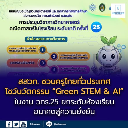 EZ Webmaster February 26, 2026 สสวท. ชวนครูไทยทั่วประเทศโชว์นวัตกรรม “Green STEM & AI” ในงาน วทร.25 ยกระดับห้องเรียนอนาคตสู่ความยั่งยืน EZ Webmaster February 26, 2026 สถาบันส่งเสริมการสอนวิทยาศาสตร์และเทคโนโลยี (สสวท.) จับมือมหาวิทยาลัยราชภัฏราชนครินทร์ (มรร.) และสมาคมครูวิทยาศาสตร์ คณิตศาสตร์และเทคโนโลยีแห่งประเทศไทย (สวคท.) ขอเชิญชวนครู อาจารย์ และบุคลากรทางการศึกษาทั่วประเทศ ส่งผลงานวิชาการเข้าร่วมนำเสนอในงาน “การประชุมวิชาการวิทยาศาสตร์ คณิตศาสตร์ในโรงเรียน ระดับชาติ ครั้งที่ 25 (วทร.25)” ภายใต้แนวคิด “สะเต็มศึกษาสีเขียวเพื่อโลกที่ยั่งยืน ผ่านการบูรณาการและนวัตกรรม (Green STEM Education for Global Sustainability: Integration and Innovation)” เปิดเวทีแลกเปลี่ยนองค์ความรู้ด้านการจัดการเรียนการสอนวิทยาศาสตร์ คณิตศาสตร์ Green STEM ความฉลาดรู้ด้าน AI หุ่นยนต์ วิทยาการข้อมูล เทคโนโลยีห้องเรียนอนาคต และชุมชนการเรียนรู้ทางวิชาชีพ เพื่อสร้างความฉลาดรู้และทักษะแห่งศตวรรษที่ 21 โดยเปิดรับส่งผลงานตั้งแต่วันนี้ถึง 30 มีนาคม 2569 ดูรายละเอียดและส่งผลงานได้ที่ https://wtr25.rru.ac.th/sywfsc/ ประกาศผลคัดเลือกวันที่ 30 เมษายน 2569 และจัดการประชุมระหว่างวันที่ 24–26 กรกฎาคม 2569 ณ มรร.… Continue Reading