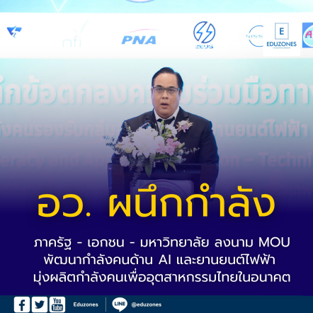 EZ Webmaster February 2, 2026 อว. ผนึกกำลังภาครัฐ-เอกชน-มหาวิทยาลัย ลงนาม MOU พัฒนากำลังคนด้าน AI และยานยนต์ไฟฟ้า มุ่งผลิตกำลังคนเพื่ออุตสาหกรรมไทยในอนาคต EZ Webmaster February 2, 2026 กระทรวงการอุดมศึกษา วิทยาศาสตร์ วิจัยและนวัตกรรม (อว.) จัดพิธีลงนามบันทึกข้อตกลงความร่วมมือทางวิชาการ (MOU) ด้านการพัฒนาหลักสูตรเชิงปฏิบัติการเพื่อพัฒนากำลังคนรองรับกลุ่มอุตสาหกรรมยานยนต์ไฟฟ้า และด้านการพัฒนาหลักสูตรอบรมเชิงปฏิบัติการ “Industrial AI Literacy and Application for Non-Technical Student” โดยมีผู้แทนจากภาครัฐ ภาคเอกชนชั้นนำ และสถาบันอุดมศึกษาชั้นนำกว่า 20 หน่วยงาน ร่วมลงนามความร่วมมืออย่างเป็นรูปธรรม เมื่อวันพฤหัสบดีที่ 29 มกราคม 2569 เวลา 10.30 น. ณ ห้องกมลทิพย์ 3… Continue Reading