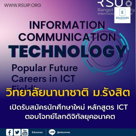 EZ Webmaster February 4, 2026 วิทยาลัยนานาชาติ ม.รังสิต เปิดรับสมัครนักศึกษาใหม่ หลักสูตร ICT ตอบโจทย์โลกดิจิทัลยุคอนาคต EZ Webmaster February 4, 2026 วิทยาลัยนานาชาติ ม.รังสิต เปิดรับสมัครนักศึกษาใหม่ หลักสูตร ICT ตอบโจทย์โลกดิจิทัลยุคอนาคต วิทยาลัยนานาชาติ มหาวิทยาลัยรังสิต เปิดรับสมัครนักศึกษาใหม่ในหลักสูตร ICT (Information and Communication Technology) หลักสูตรนานาชาติที่ออกแบบมาเพื่อรองรับความเปลี่ยนแปลงของโลกดิจิทัลยุคใหม่ มุ่งพัฒนาศักยภาพผู้เรียนให้พร้อมก้าวสู่สายอาชีพด้านเทคโนโลยีและนวัตกรรมในระดับสากล หลักสูตร ICT เน้นการเรียนรู้ควบคู่ทั้ง ภาคทฤษฎีและภาคปฏิบัติจริง เพื่อเสริมสร้างความรู้ความเข้าใจด้านเทคโนโลยีสารสนเทศ การสื่อสารดิจิทัล และการประยุกต์ใช้นวัตกรรมสมัยใหม่ ผู้เรียนจะได้ฝึกทักษะที่สามารถนำไปใช้ได้จริงในสายงานแห่งอนาคต อาทิ การจัดการข้อมูลดิจิทัล เทคโนโลยีสื่อสาร ระบบสารสนเทศ และการพัฒนาโซลูชันทางเทคโนโลยี นอกจากนี้ หลักสูตรยังมุ่งส่งเสริมทักษะสำคัญในศตวรรษที่ 21 ทั้งการคิดวิเคราะห์ การทำงานเป็นทีม การสื่อสารในบริบทนานาชาติ และการปรับตัวต่อเทคโนโลยีที่เปลี่ยนแปลงอย่างรวดเร็ว… Continue Reading
