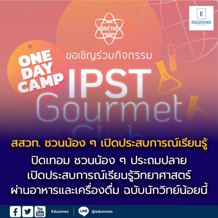 ปิดเทอมนี้ สสวท. ชวนน้อง ๆ ประถมปลาย เปิดประสบการณ์เรียนรู้ วิทยาศาสตร์ผ่านอาหารและเครื่องดื่ม ฉบับนักวิทย์น้อย EZ WebmasterJanuary 29, 2026 ปิดเทอมนี้ สถาบันส่งเสริมการสอนวิทยาศาสตร์และเทคโนโลยี (สสวท.) ชวนนักเรียนระดับประถมศึกษาตอนปลาย (ป.4–6) ร่วมกิจกรรม One Day Camp “IPST Gourmet Club เจาะเมนลับ ฉบับนักวิทย์น้อย” เรียนรู้วิทยาศาสตร์ผ่านการลงมือทำอย่างสนุกและสร้างสรรค์กับกิจกรรม “Craft Chocolate” ฝึกทักษะการชั่ง ตวง วัด พร้อมเรียนรู้โภชนาการ และกิจกรรม…