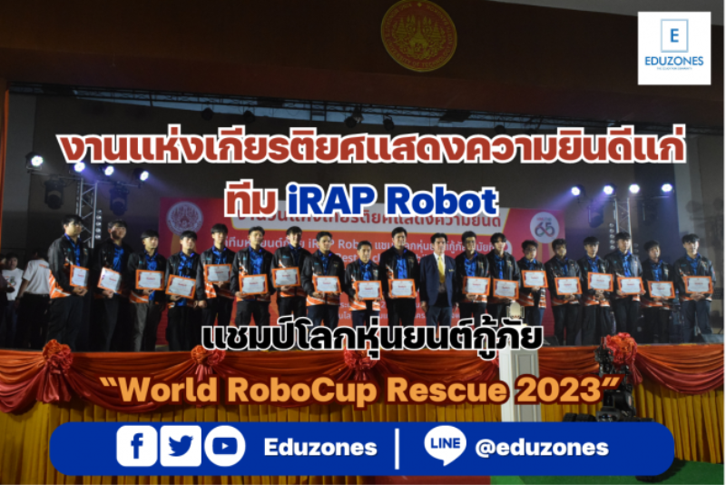 EZ Webmaster July 27, 2023 งานแห่งเกียรติยศแสดงความยินดีแก่ทีม iRAP Robot แชมป์โลกหุ่นยนต์กู้ภัย “World RoboCup Rescue 2023” EZ Webmaster July 27, 2023 มหาวิทยาลัยเทคโนโลยีพระจอมเกล้าพระนครเหนือ (มจพ.) จัดงานวันแห่งเกียรติยศแสดงความยินดีแก่ ทีมหุ่นยนต์กู้ภัย iRAP Robot ที่ได้รับรางวัลชนะเลิศแชมป์โลกหุ่นยนต์กู้ภัย “World RoboCup Rescue 2023” และอีก 2 รางวัล ได้แก่ รางวัล BEST IN CLASS MOBILITY (รางวัลนวัตกรรมสมรรถนะการขับเคลื่อนหุ่นยนต์ยอดเยี่ยมระดับโลก) และรางวัล BEST IN CLASS MAPPING (รางวัลการสร้างแผนที่จำลองเสมือนจริงยอดเยี่ยมระดับโลก) ในวันพฤหัสบดี ที่ 27 กรกฎาคม 2566 เวลา… Continue Reading