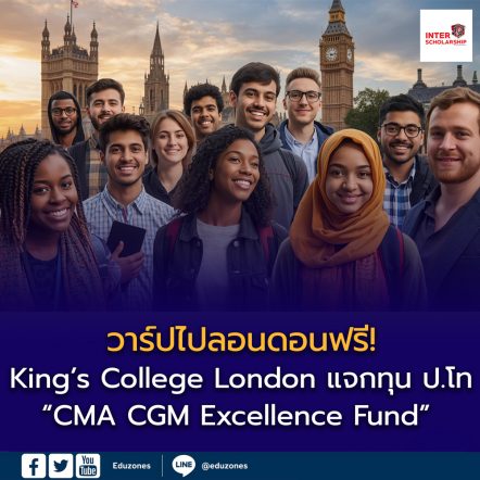 EZ Webmaster April 19, 2026 ปิดวาร์ปทุนเรียนต่ออังกฤษ! King’s College London แจกทุน ป.โท “CMA CGM Excellence Fund” เรียนฟรี + ได้เงินใช้ปีละเกือบล้าน! EZ Webmaster April 19, 2026 🇬🇧 เปิดวาร์ปทุนเรียนต่ออังกฤษ! King’s College London แจกทุน ป.โท “CMA CGM Excellence Fund” เรียนฟรี + ได้เงินใช้ปีละเกือบล้าน! ข่าวดีสำหรับน้อง ๆ ที่ฝันอยากเรียนต่ออังกฤษ! ล่าสุด King’s College London (KCL) มหาวิทยาลัยระดับโลกจากสหราชอาณาจักร ร่วมกับบริษัทโลจิสติกส์ยักษ์ใหญ่อย่าง CMA CGM Group เปิดรับสมัครทุนการศึกษา CMA CGM Excellence Fund… Continue Reading