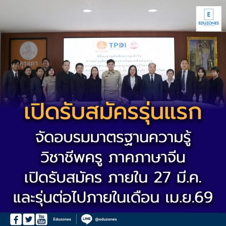 EZ Webmaster March 23, 2026 ครูจีนเฮ! คุรุสภาจับมือสมาคมครูจีน จัดอบรมมาตรฐานความรู้วิชาชีพครู ภาคภาษาจีน เปิดรับสมัครรุ่นแรก ภายใน 27 มี.ค. และรุ่นต่อไปภายในเดือน เม.ย.69 EZ Webmaster March 23, 2026 ผศ.ดร.อมลวรรณ วีระธรรมโม เลขาธิการคุรุสภา เปิดเผยว่า เมื่อเร็วๆ นี้ ตนได้มอบหมายให้ ผศ.ดร.พลรพี ทุมมาพันธ์ รองเลขาธิการคุรุสภา เป็นประธานในพิธีลงนามบันทึกความเข้าใจความร่วมมือทางวิชาการในการดำเนินงานอบรมหลักสูตรมาตรฐานความรู้วิชาชีพครูภาคภาษาจีนกับสมาคมครูจีน (ประเทศไทย) โดยมีดร.วรรณา ลอลือเลิศ นายกสมาคมครูจีน (ประเทศไทย) พร้อมด้วยคณะผู้บริหารและเจ้าหน้าที่สมาคมครูจีน (ประเทศไทย) และคณะผู้บริหารและพนักงานเจ้าหน้าที่ของสำนักงานเลขาธิการคุรุสภาสภา เข้าร่วมในพิธี โดยสำนักงาน เลขาธิการคุรุสภากับสมาคมครูจีน (ประเทศไทย)ได้กำหนดระยะเวลาความร่วมมือเป็นเวลา 3 ปี ตั้งแต่เดือนมีนาคม 2569 – มีนาคม 2572 โดยคุรุสภาจะสนับสนุนบทเรียนและสื่อประกอบที่เกี่ยวข้องในหลักสูตรอบรมมาตรฐานความรู้วิชาชีพครู จำนวน… Continue Reading