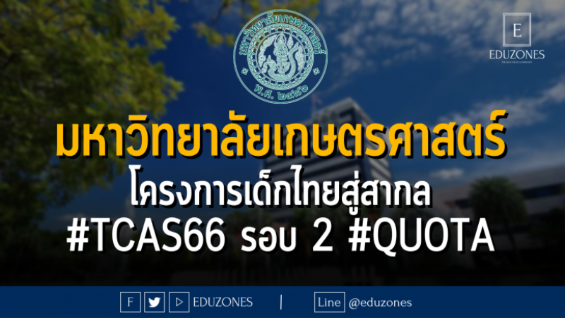 EZ Webmaster March 20, 2023 มหาวิทยาลัยเกษตรศาสตร์ โครงการเด็กไทยสู่สากล #TCAS66 รอบ 2 #QUOTA – หมดเขต 22 มีนาคม 2566 EZ Webmaster March 20, 2023 มหาวิทยาลัยเกษตรศาสตร์ โครงการเด็กไทยสู่สากล #TCAS66 รอบ 2 #QUOTA – หมดเขต 22 มีนาคม 2566 . คุณสมบัติ มีคะแนนสอบวิชา TGAT / TPAT / A-Level . จำนวนที่เปิดรับ 69 คน คณะวิทยาศาสตร์ 32 คน คณะสังคมศาสตร์ 4 คน คณะอุตสาหกรรมเกษตร 7 คน… Continue Reading