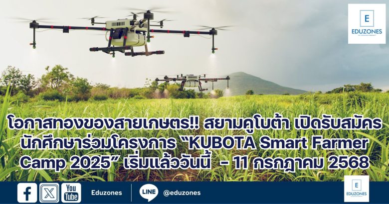 EZ Webmaster June 9, 2025 โอกาสทองของสายเกษตร!! สยามคูโบต้า เปิดรับสมัครนักศึกษาร่วมโครงการ “KUBOTA Smart Farmer Camp 2025” เริ่มแล้ววันนี้ – 11 กรกฎาคม 2568 EZ Webmaster June 9, 2025 บริษัทสยามคูโบต้าคอร์ปอเรชั่น จำกัด เชิญชวนนักศึกษาที่มีใจรักในการทำเกษตรเข้าร่วม “KUBOTA Smart Farmer Camp 2025” ในธีม “Green Agri-Verse” เกษตรอัจฉริยะ ปลูกให้ปัง ดังทุกเวิร์ส พร้อมจุดประกายเยาวชนรุ่นใหม่ที่มีใจรักการเกษตร ให้ได้อัปเดตโลกการเกษตรยั่งยืน ผ่านกิจกรรมเชิงปฏิบัติสุดเข้มข้นกับที่สุดของแคมป์เกษตรสุดมันส์แห่งปี พร้อมเรียนรู้จริงจากเกษตรกรต้นแบบ และได้สัมผัสประสบการณ์เกษตรวิถีออร์แกนิกจากกูรูตัวจริงกับ น้องเจน – เจนนิเฟอร์ อินเนส-เทเลอร์ หรือ น้องเจนทำฟาร์ม เจ้าของ Udon Organic Farm จะมาร่วมแชร์แนวคิดและพาลงพื้นที่เรียนรู้การทำเกษตรอินทรีย์ นอกจากนี้ยังได้เสริมทักษะผ่านกิจกรรม เวิร์กชอปด้านการตลาด ที่จะช่วยต่อยอดองค์ความรู้และพัฒนาแนวทางสู่การเป็น นักธุรกิจเกษตรรุ่นใหม่ พิเศษสุดปีนี้! เตรียมพบกับเซอร์ไพรส์จากเหล่า Mentor ด้านการเกษตร ที่จะมาถ่ายทอดประสบการณ์ตรง เติมแรงบันดาลใจ เสริมแนวคิด มุมมอง และทักษะที่จำเป็นสำหรับคนรุ่นใหม่ที่จะมาสนับสนุนวงการเกษตรไทย… Continue Reading