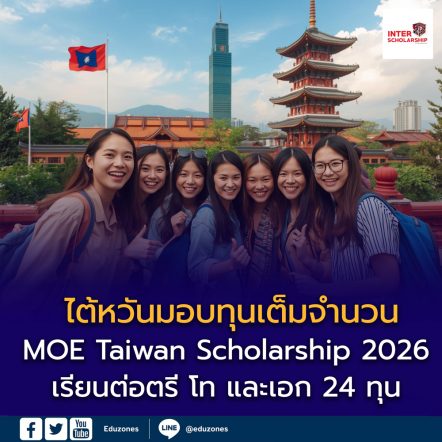 EZ Webmaster January 29, 2026 ไต้หวันมอบทุนเต็มจำนวน MOE Taiwan Scholarship 2026 เปิดรับสมัครนักเรียนไทย 24 ทุน EZ Webmaster January 29, 2026 โอกาสมาถึงแล้ว! ไต้หวันมอบทุนเต็มจำนวน MOE Taiwan Scholarship 2026 เปิดรับสมัครนักเรียนไทย 24 ทุน รัฐบาลไต้หวันประกาศเปิดรับสมัครทุนการศึกษาประจำปีการศึกษา 2569 (MOE Taiwan Scholarship 2026) อย่างเป็นทางการ โดยมอบโอกาสให้นักเรียนและนักศึกษาไทยได้ไปศึกษาต่อ ณ สาธารณรัฐจีน (ไต้หวัน) ในระดับ ปริญญาตรี ปริญญาโท และปริญญาเอก พร้อมสนับสนุนค่าใช้จ่ายตลอดระยะเวลาการศึกษา ทุนการศึกษาดังกล่าวดำเนินการโดย สำนักงานเศรษฐกิจและวัฒนธรรมไทเป ประจำประเทศไทย (TECO) มีเป้าหมายเพื่อส่งเสริมการพัฒนาศักยภาพทางวิชาการ และกระชับความร่วมมือด้านการศึกษาและวัฒนธรรมระหว่างประเทศไทยและไต้หวัน โควตาทุนการศึกษา… Continue Reading